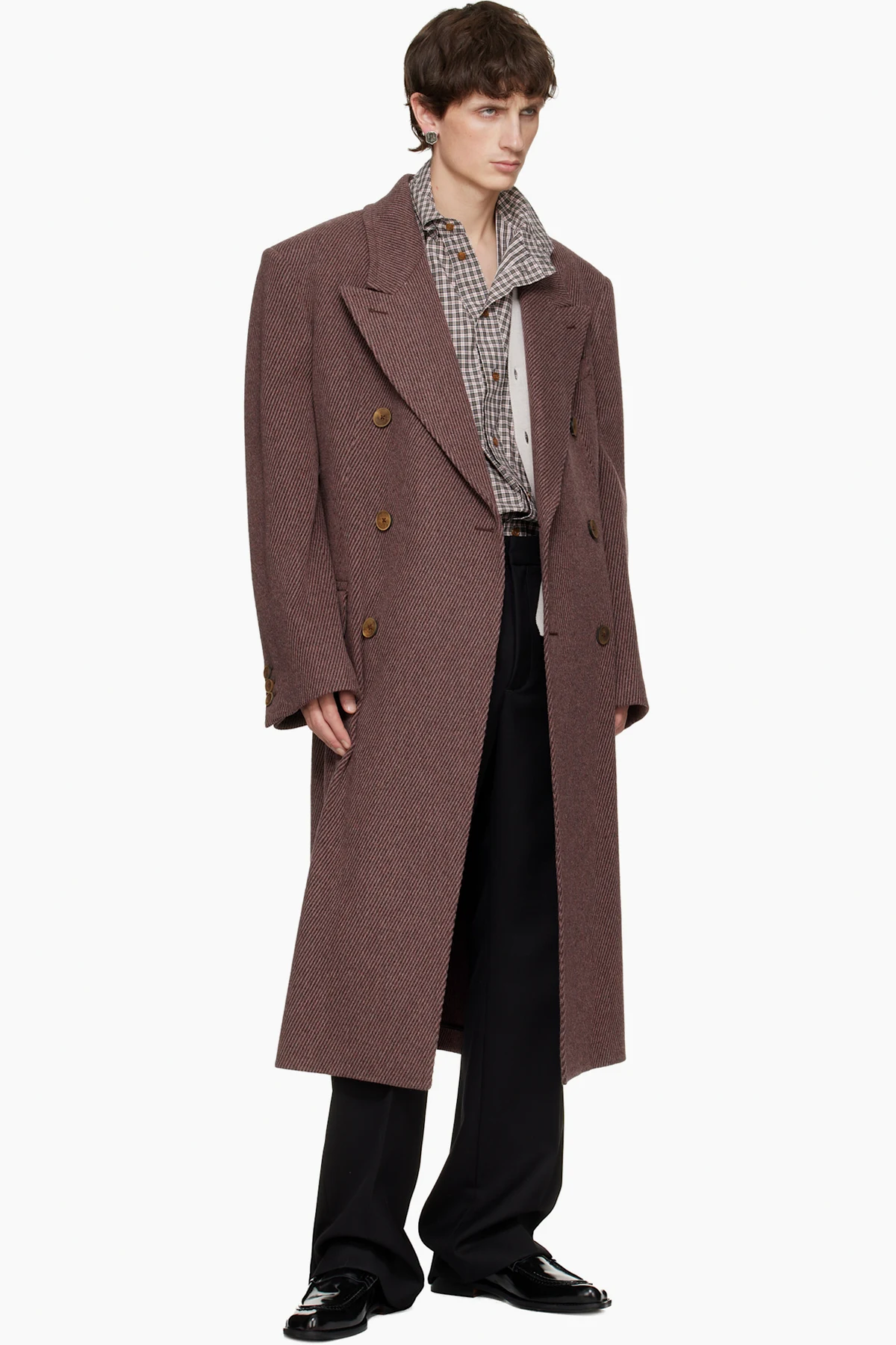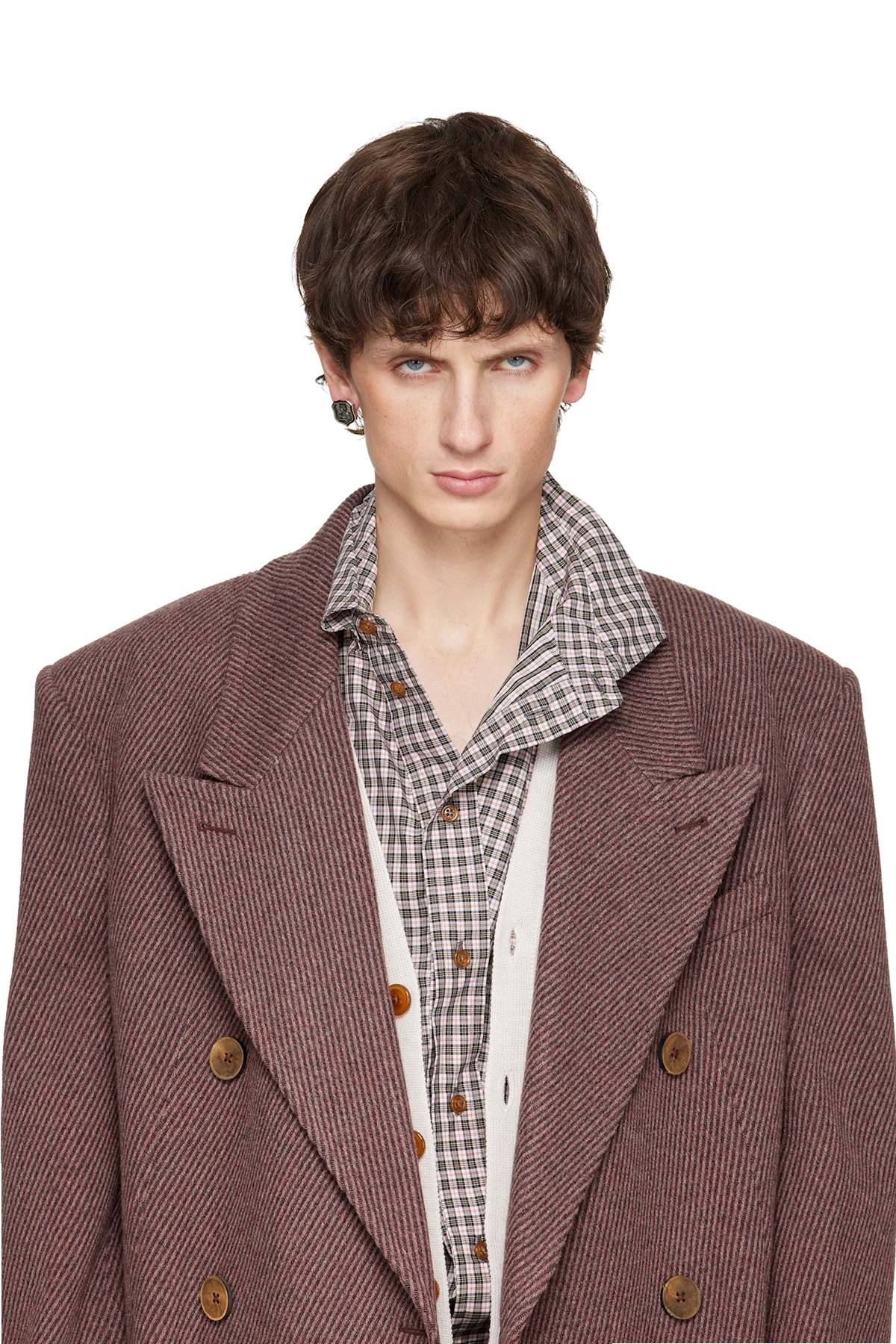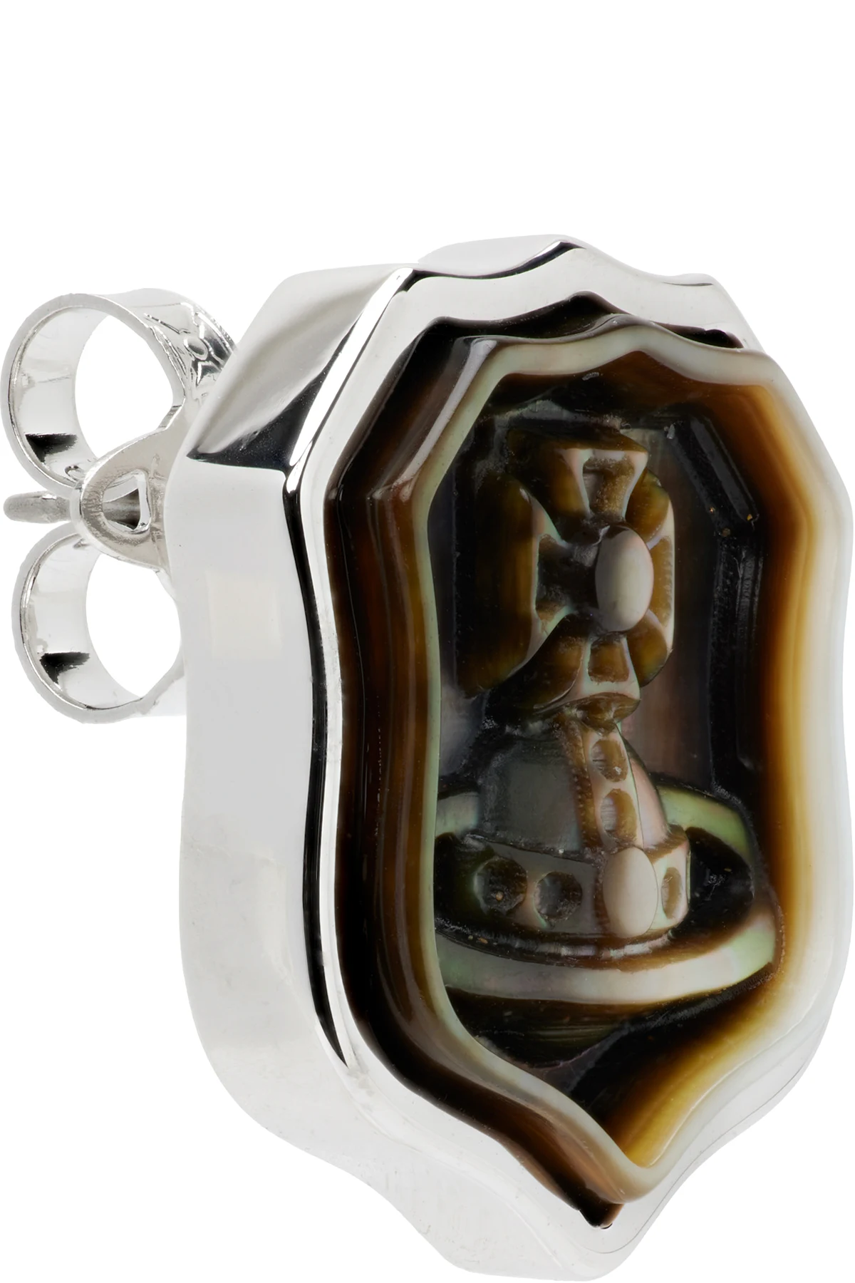 Single stud earring in silver-tone brass.