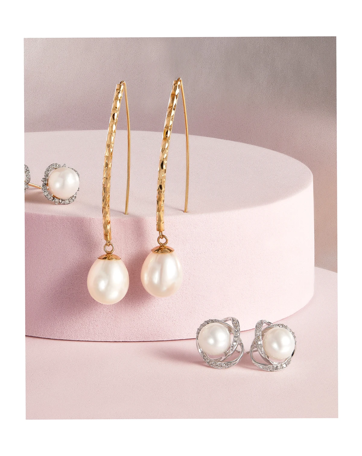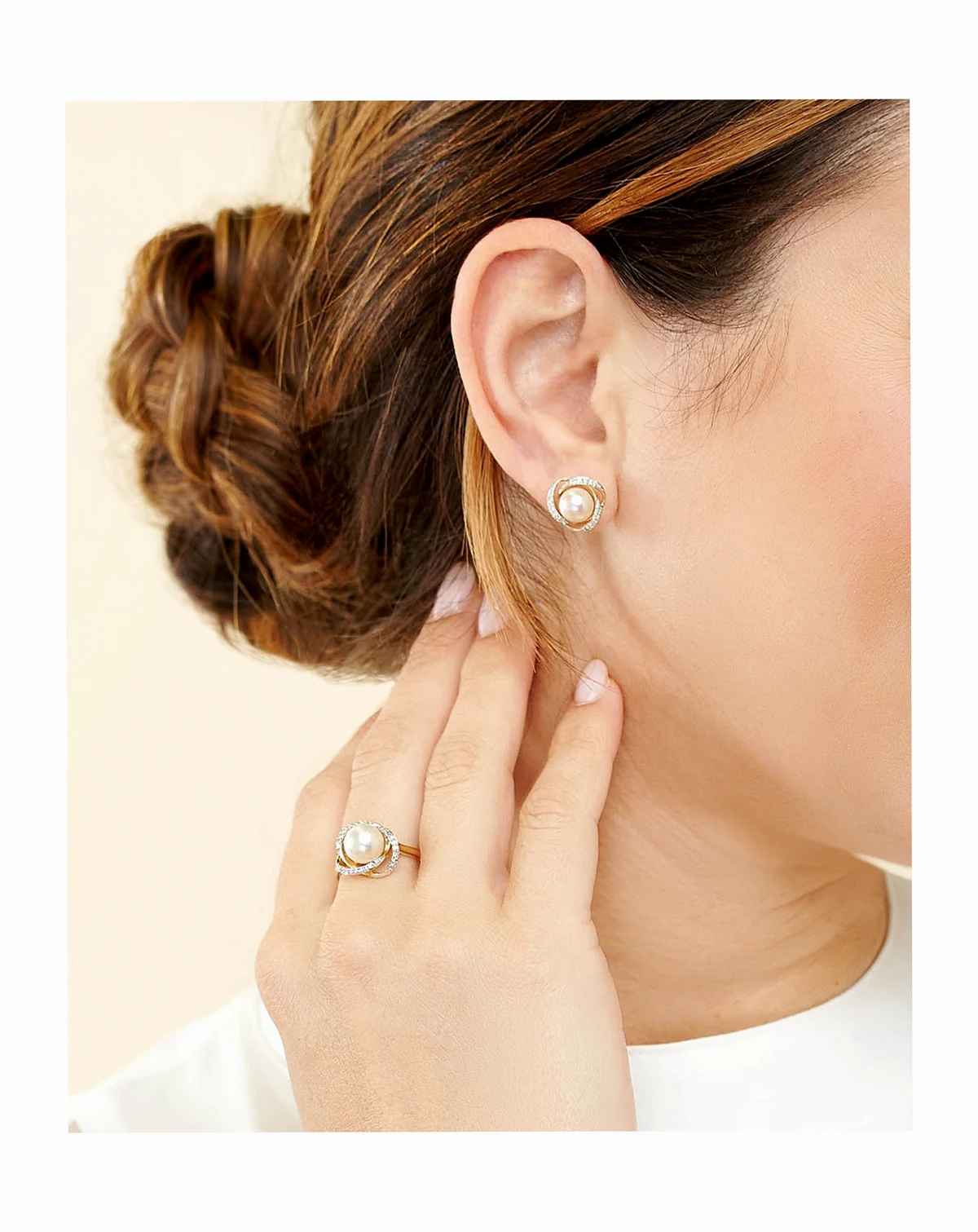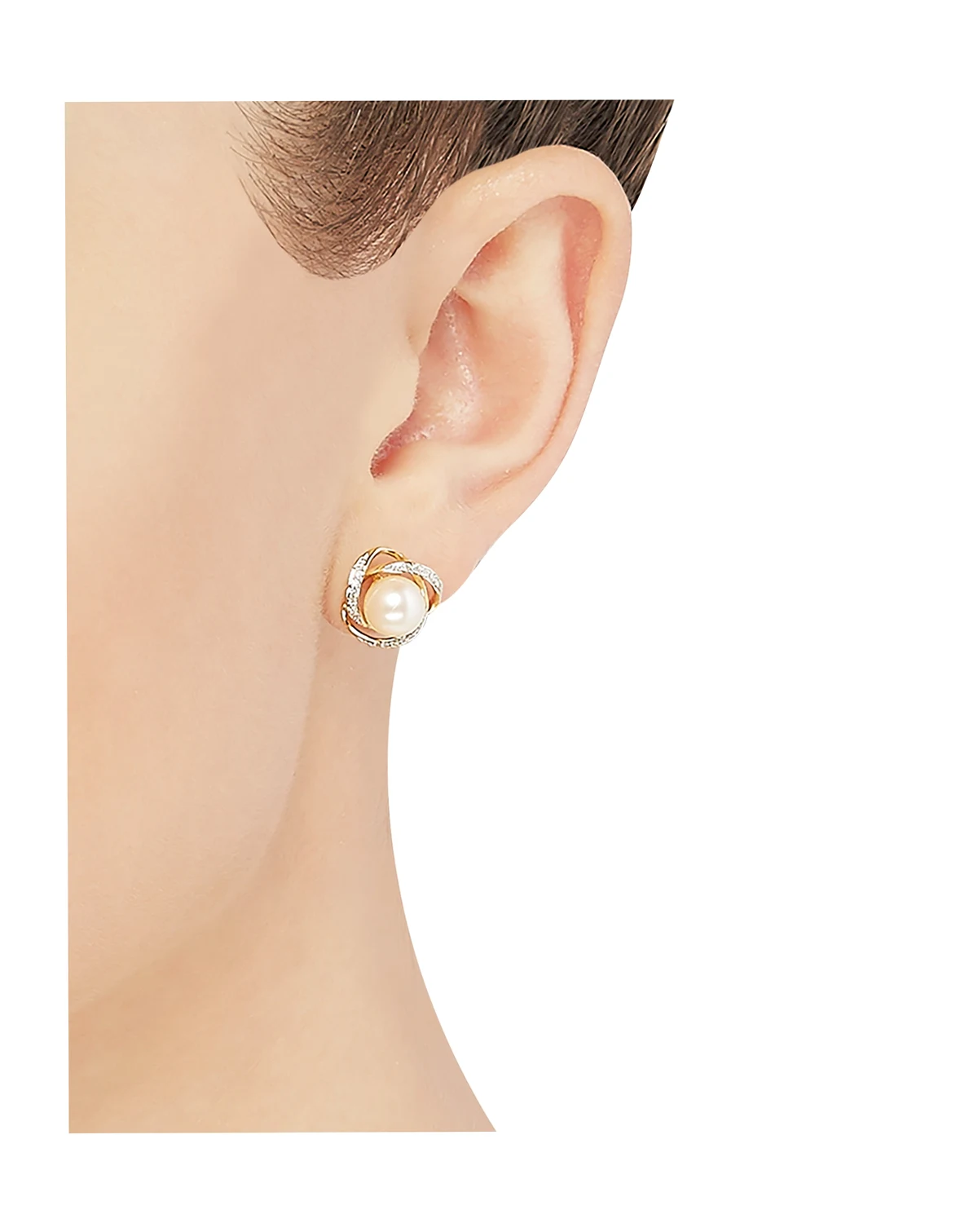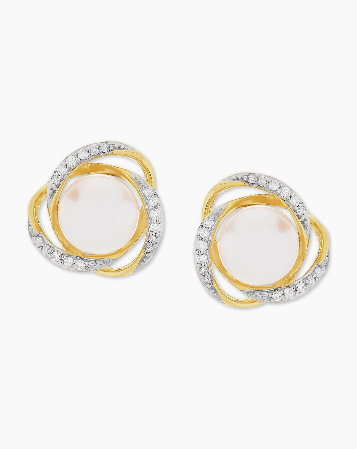 Timeless and beautiful, a duo of cultured freshwater pearls are wrapped in spirals of round-shape diamonds to create these captivating stud earrings from Honora.