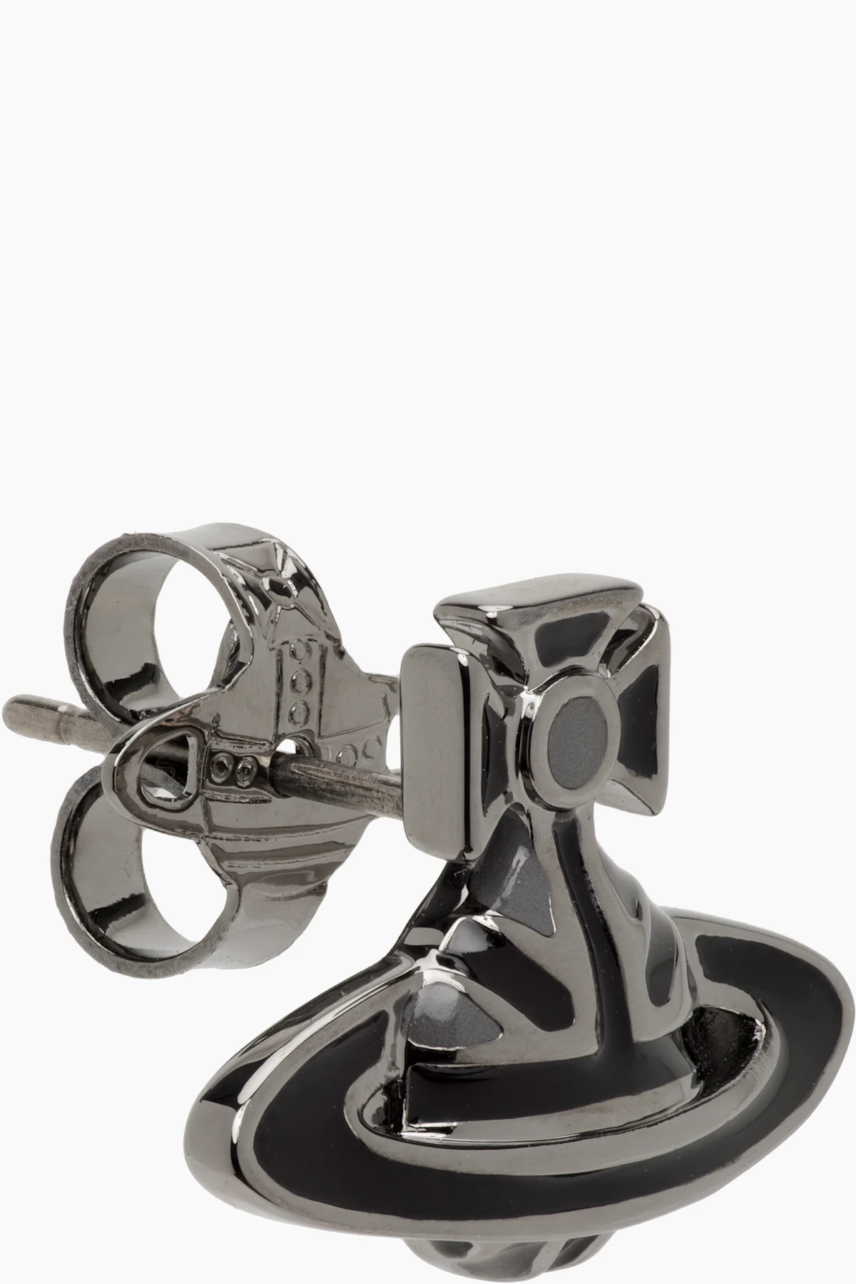 Single stud earring in gunmetal-tone brass.