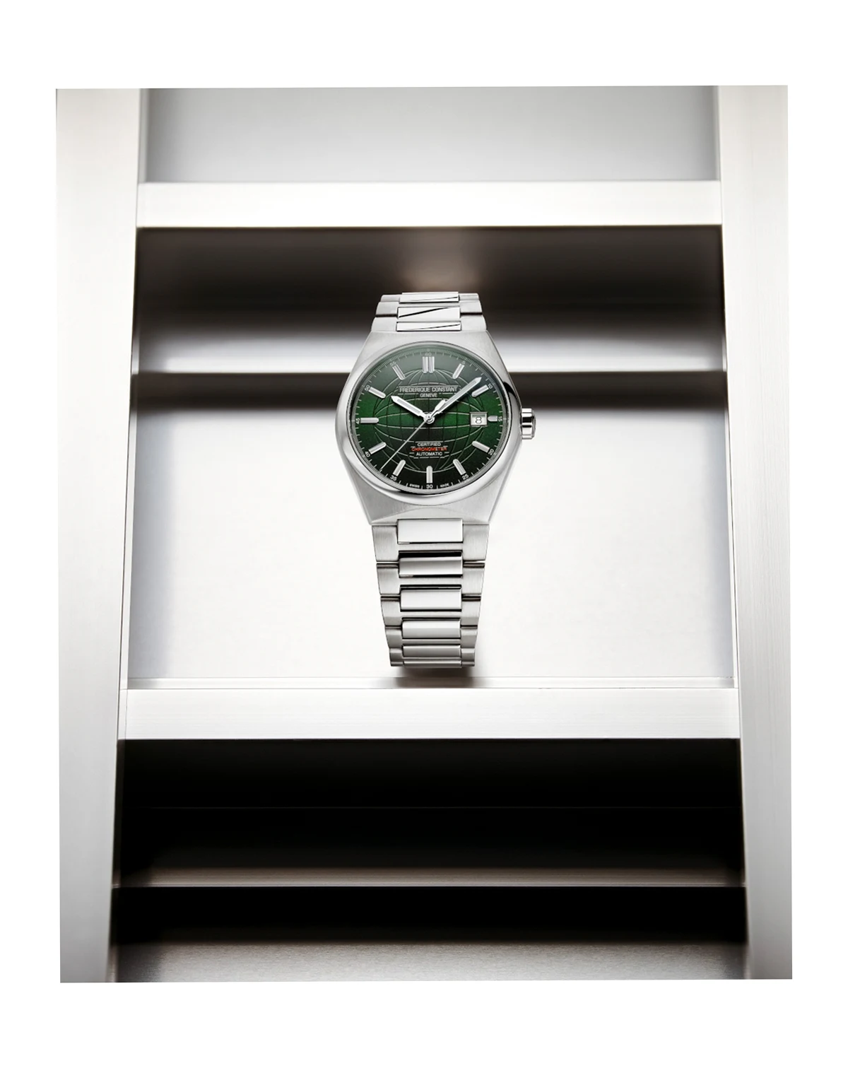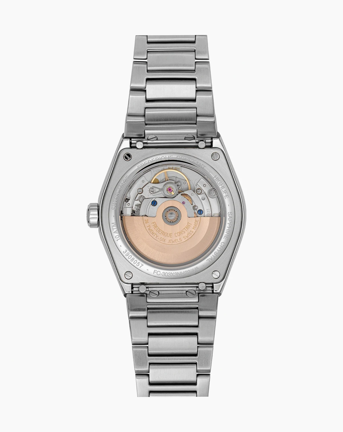 This Highlife COSC timepiece has passed the rigors of testing for accuracy by the Swiss Chronometer Testing Institute. From Frederique Constant. Style #FC-303G3NH6B