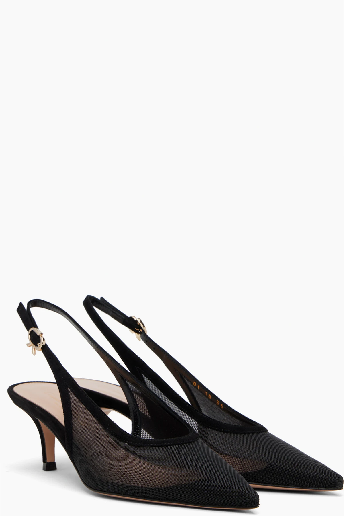 Handcrafted sheer mesh heels.