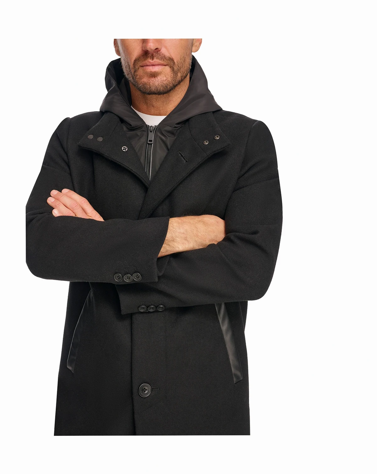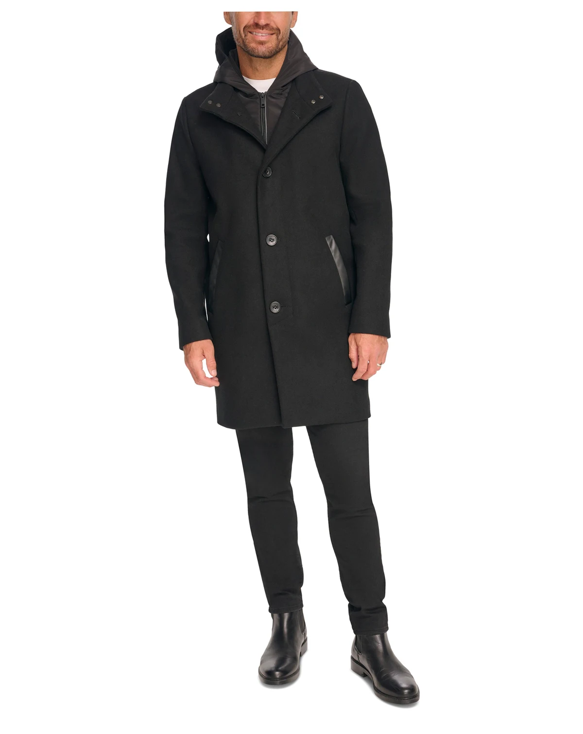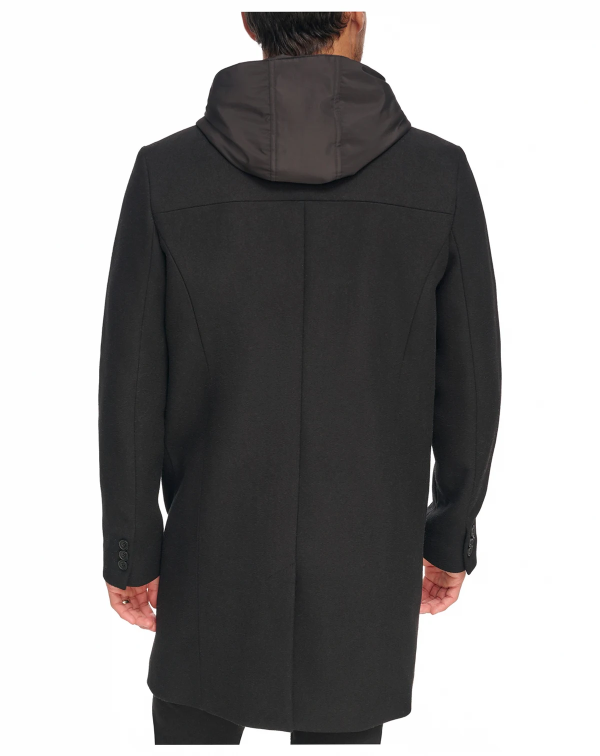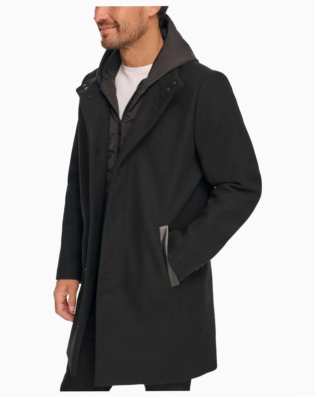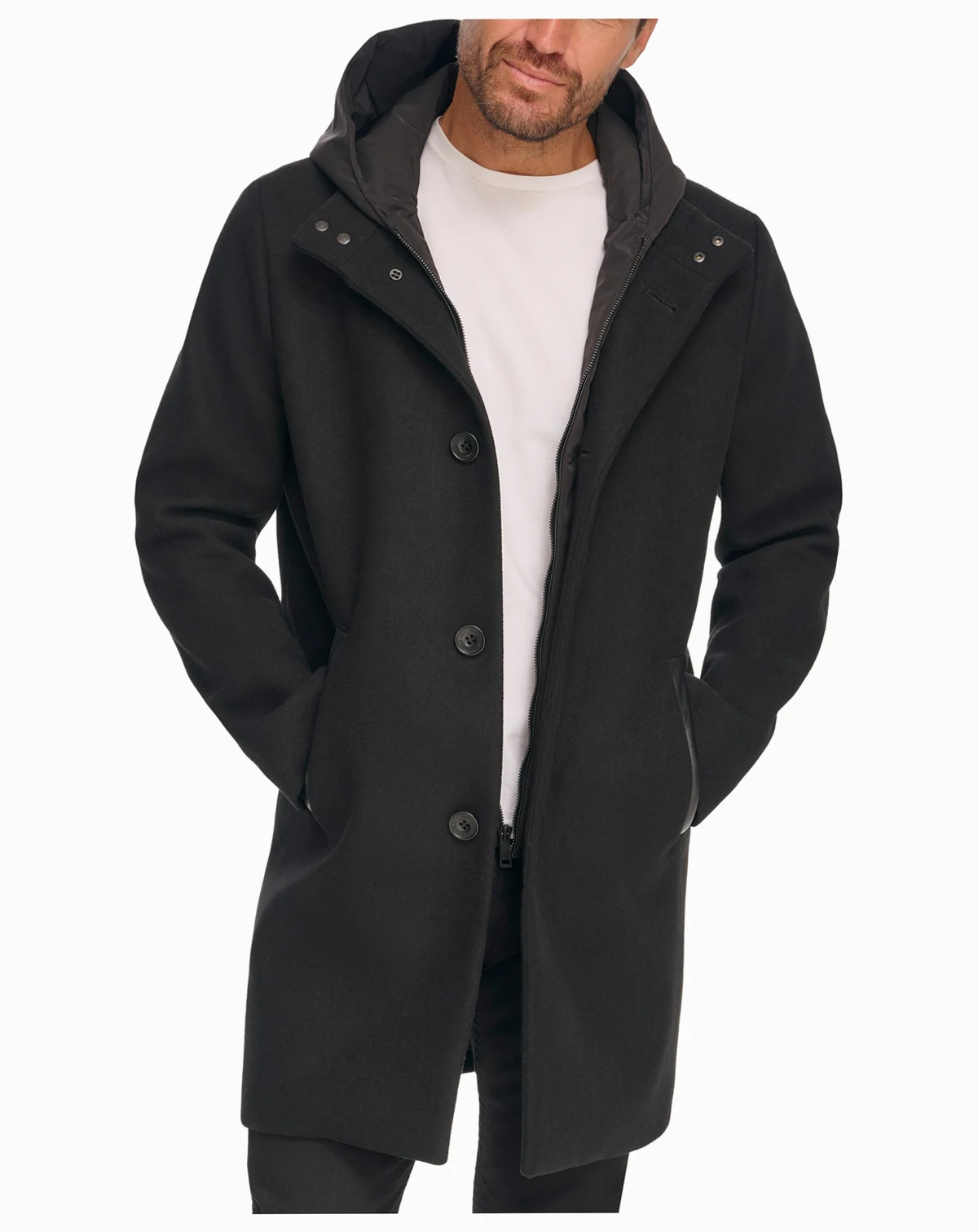 Change things up in an instant with this Kenneth Cole car coat, a polished classic with a removable hooded bib that lets you adjust the look and the warmth.