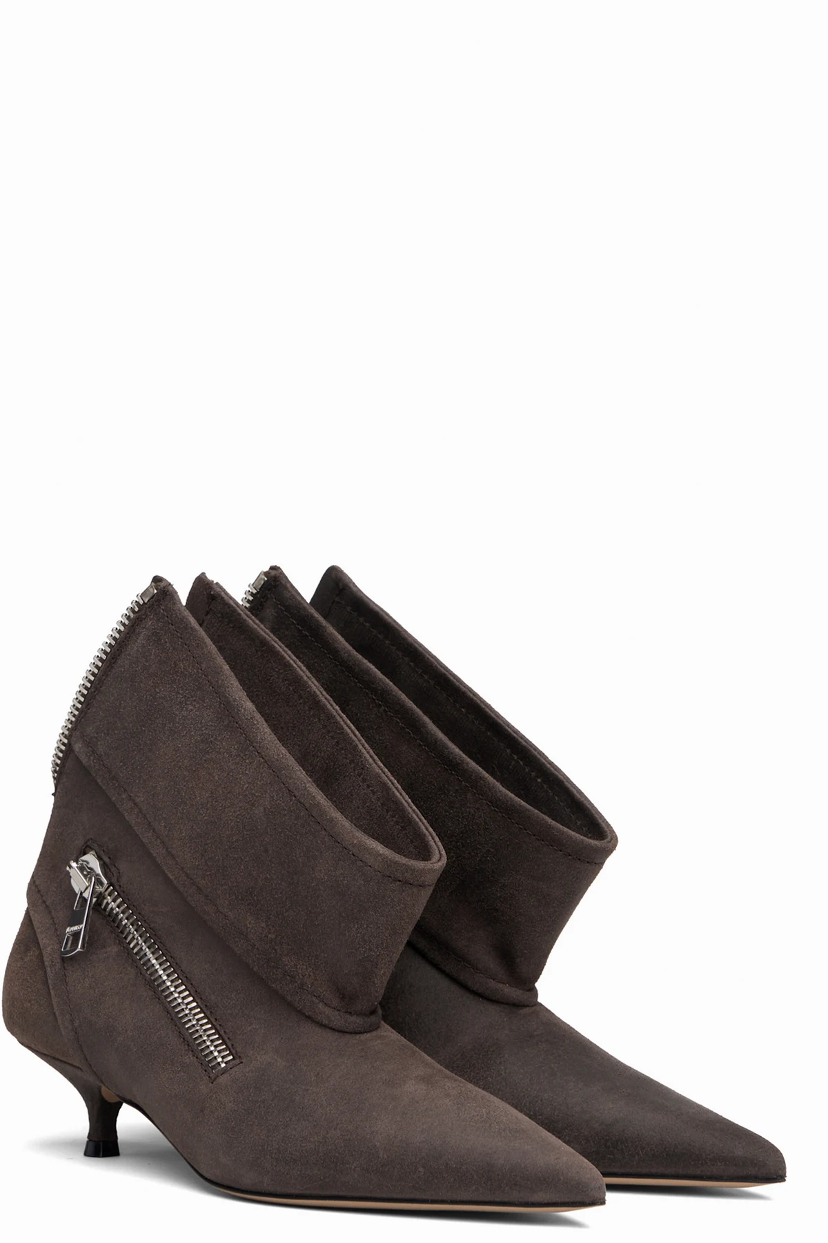 Ankle-high suede boots.