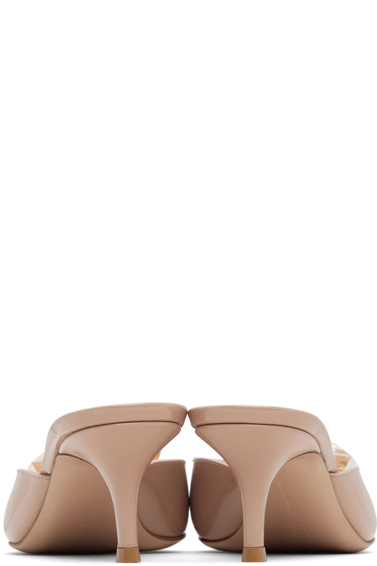 Handcrafted patent calfskin heels.