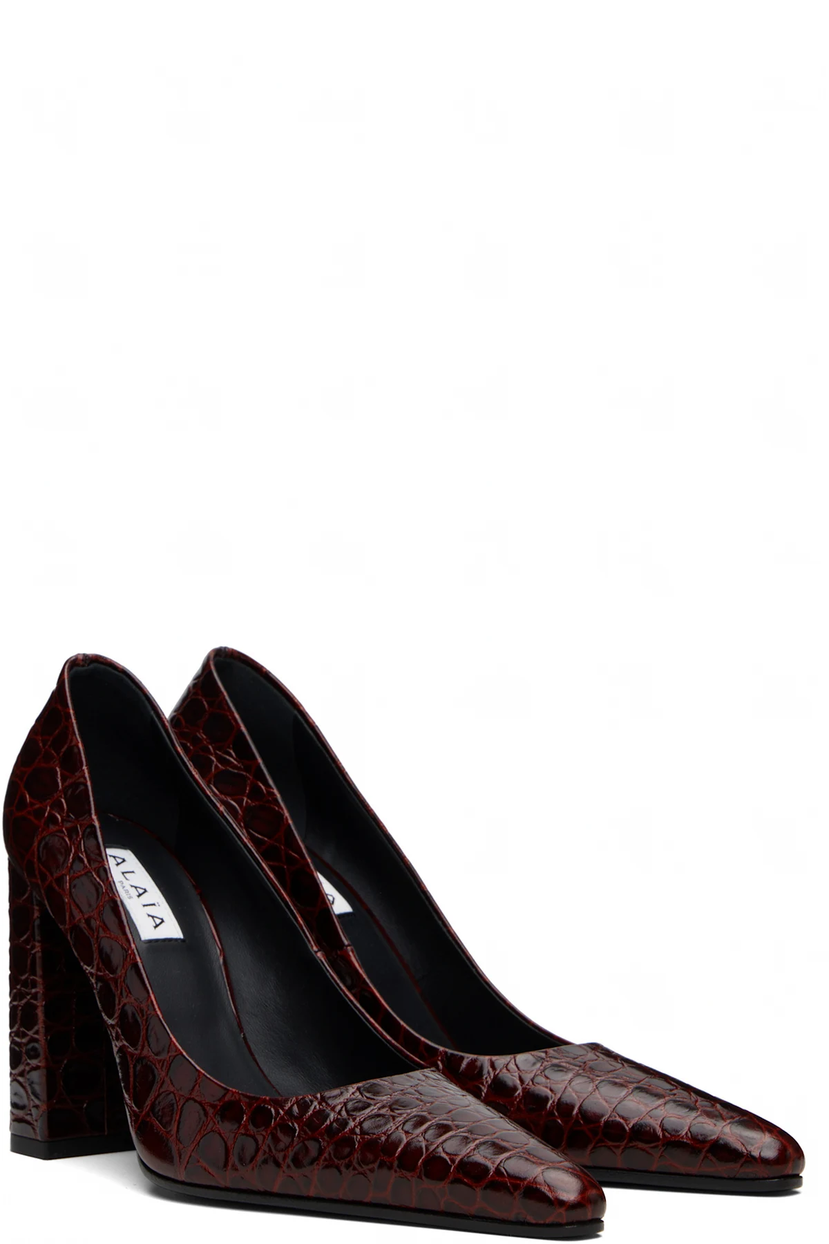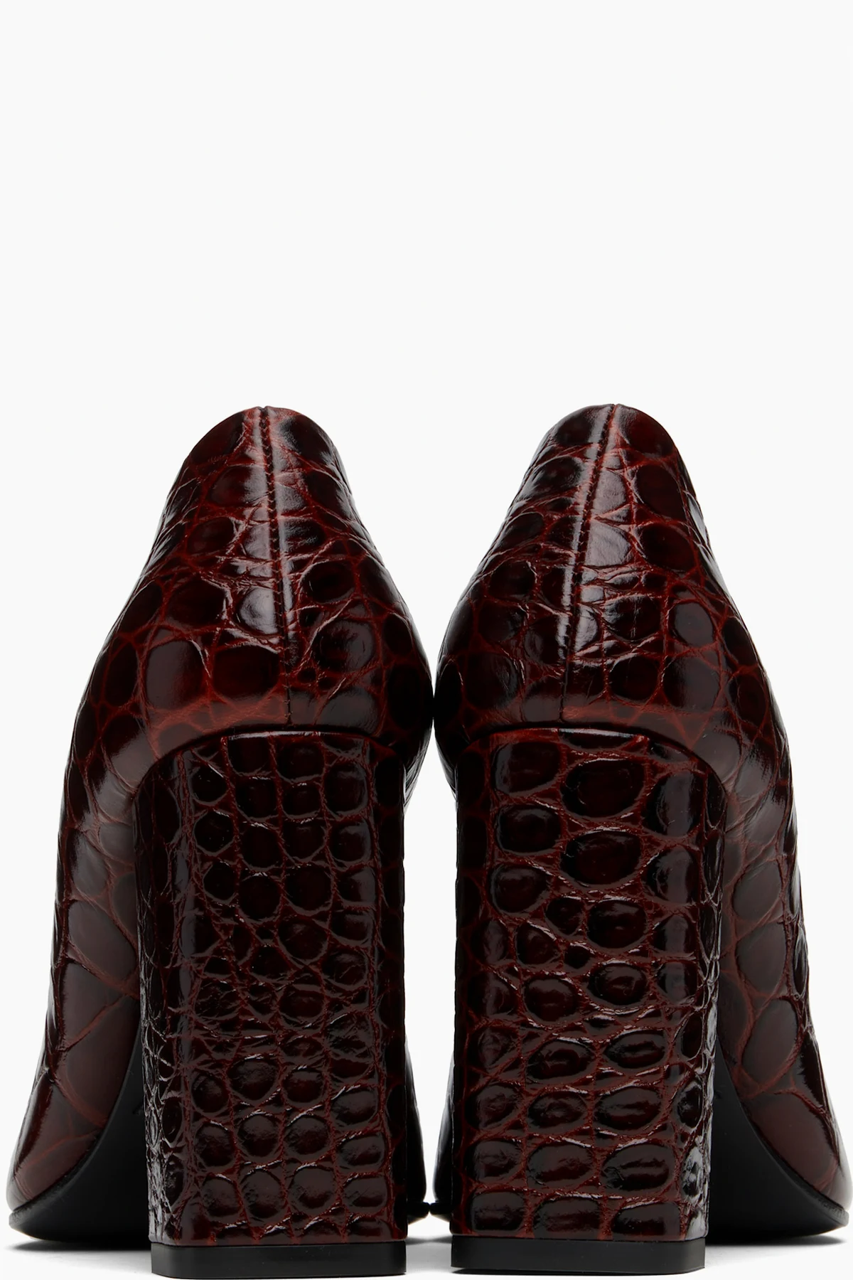 Croc-embossed calfskin heels.