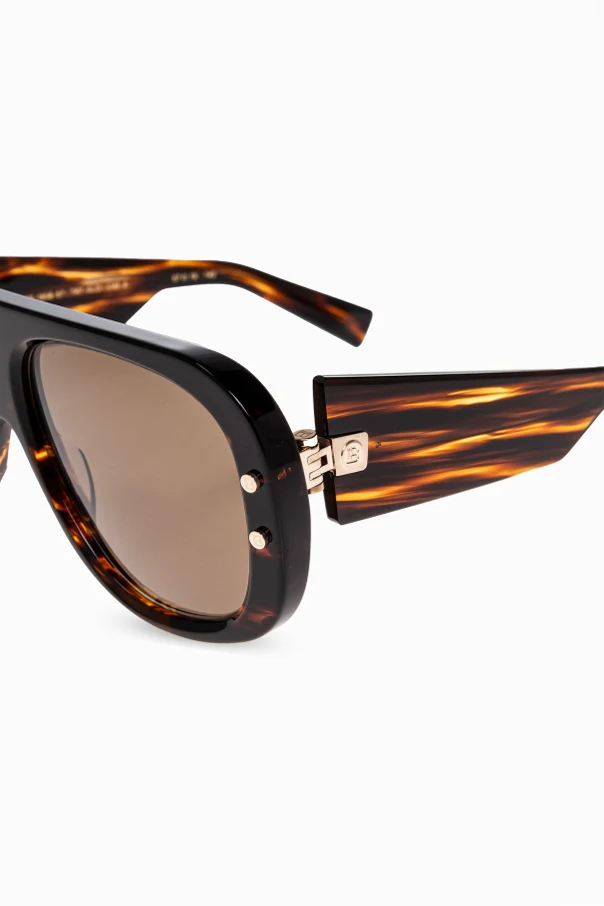 Experience the refined edge of Parisian haute couture with the Pulse sunglasses by Balmain in luxurious brown. Distinguished by their bold, wide rectangular frame and striking, pronounced lines, these sunglasses offer both an iconic silhouette and remarkable coverage. The classic tortoise shell pattern infuses each pair with an elegant, vintage-inspired spirit, harmoniously balancing sophistication and a touch of rock-inspired attitude.