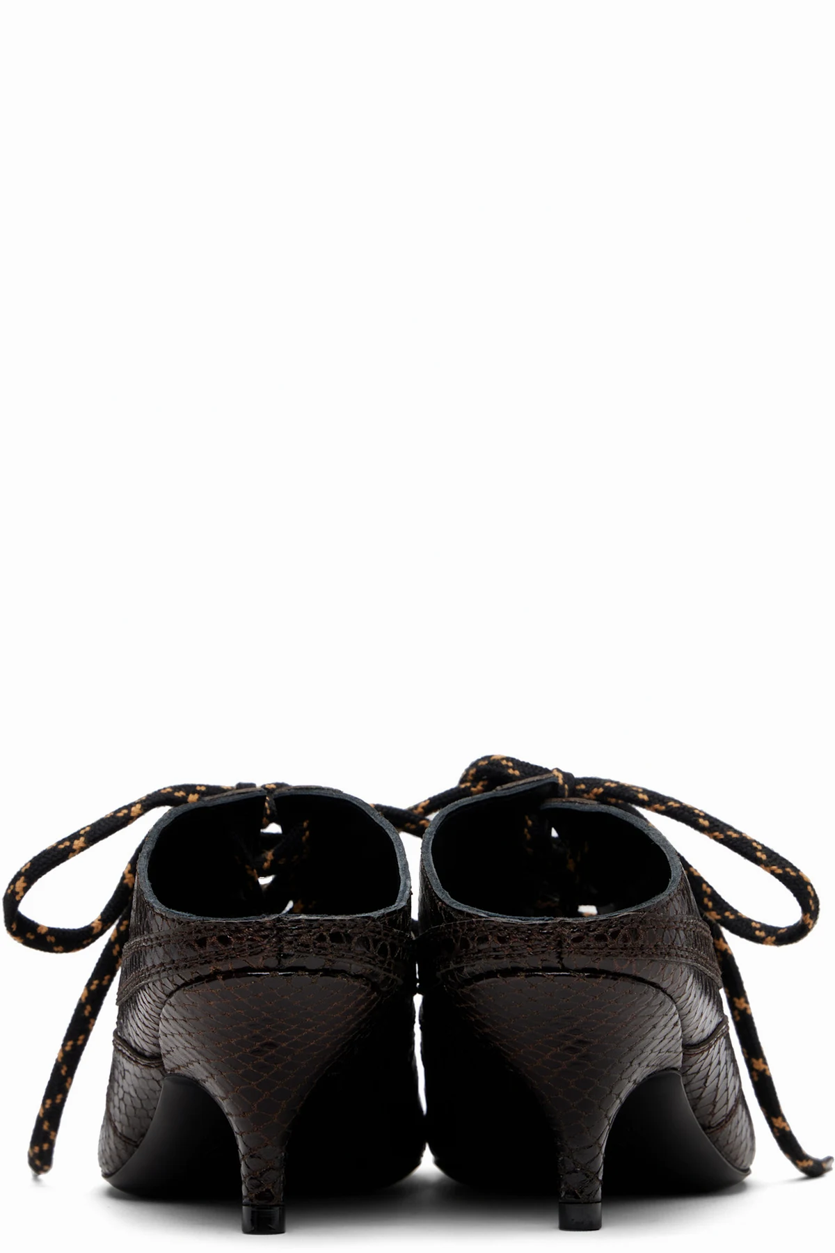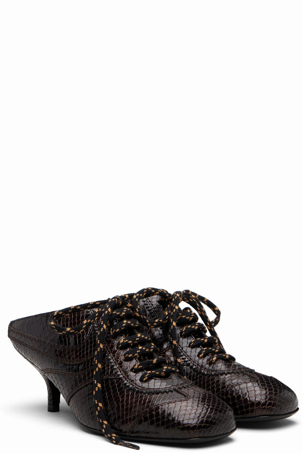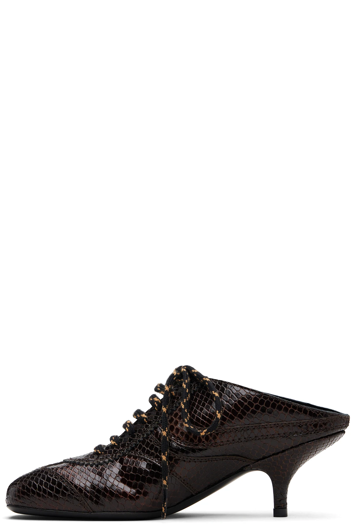 Snake-embossed leather slip-on heels.