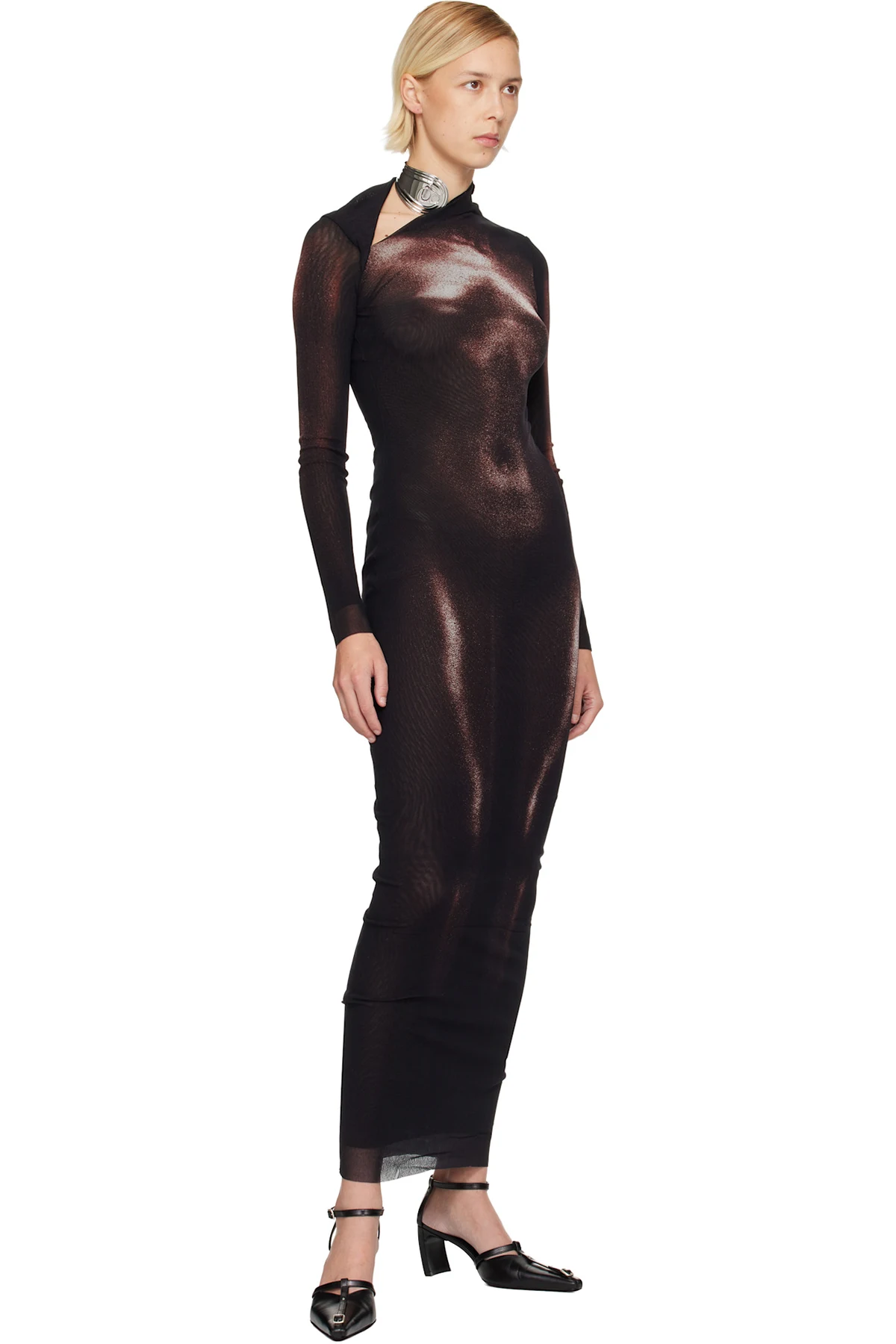 Open-cuff choker in silver-tone brass.