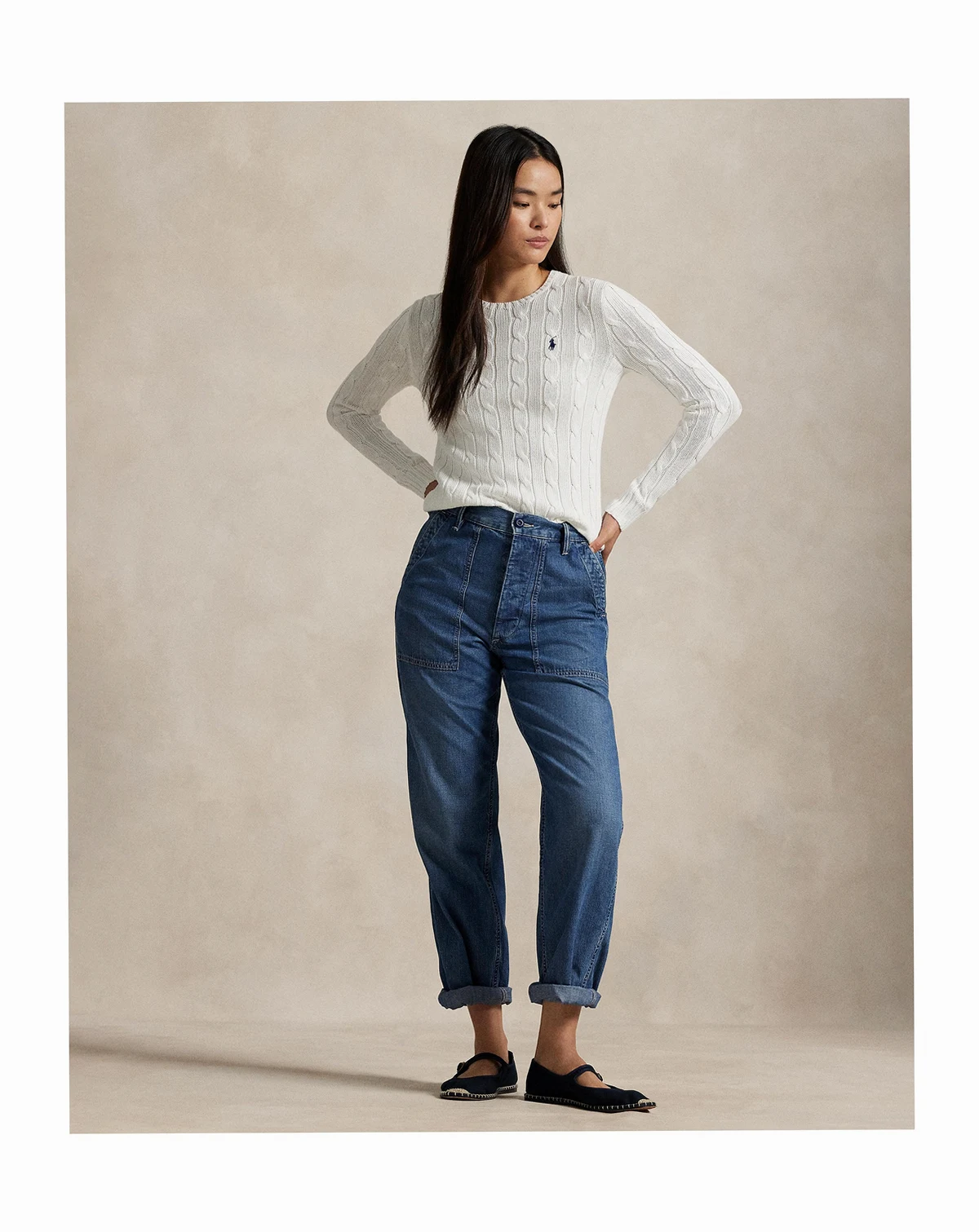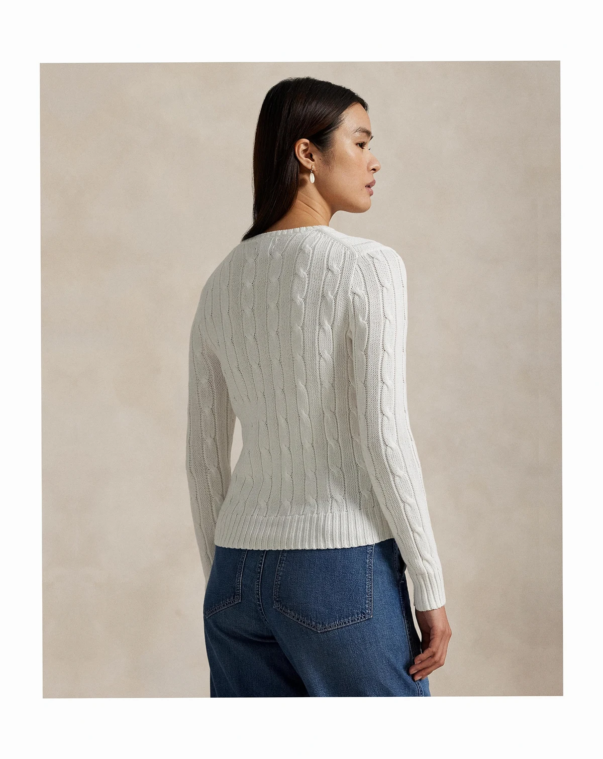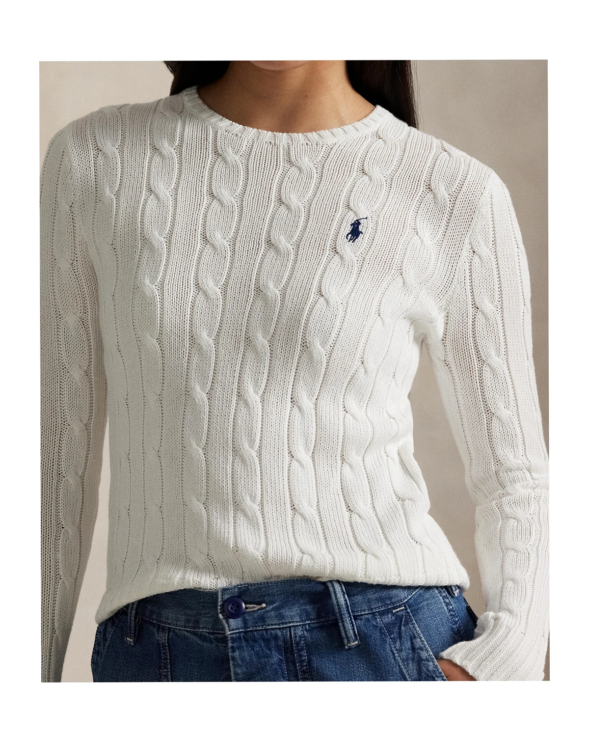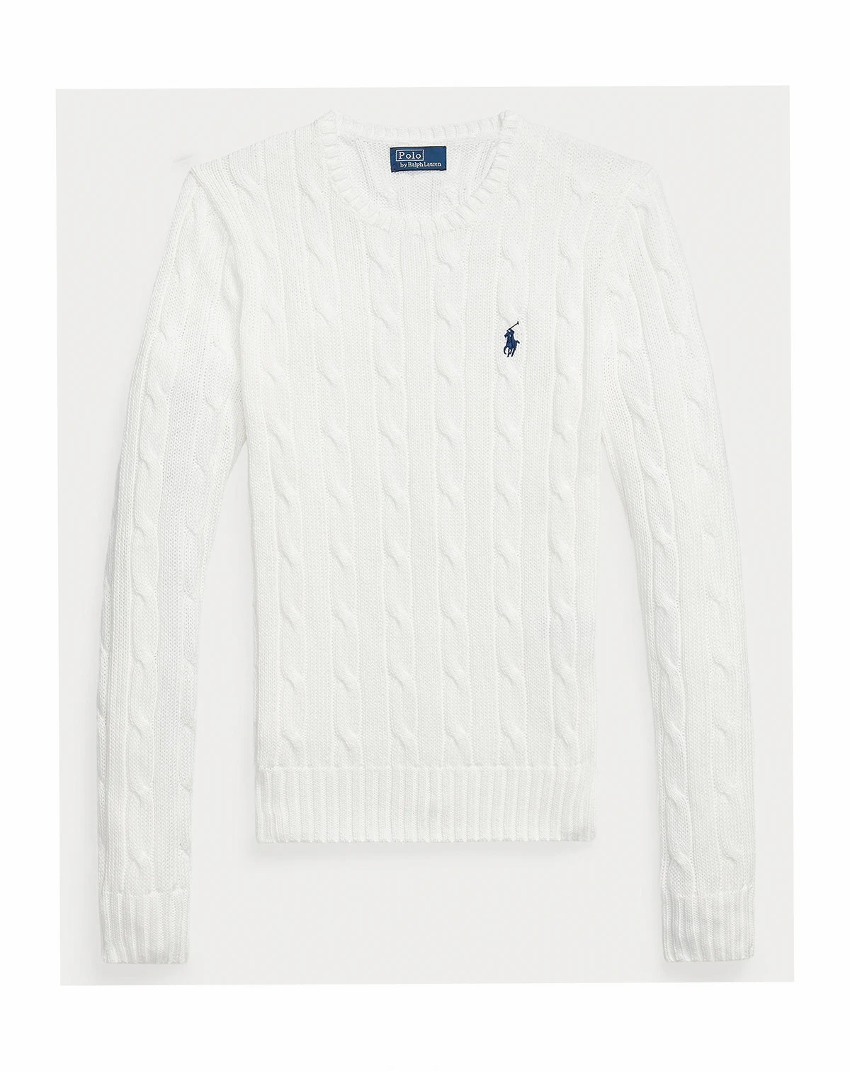 A Polo Ralph Lauren essential, this slim-fitting crewneck sweater is made with breathable cotton and showcases a signature cable-knit construction.