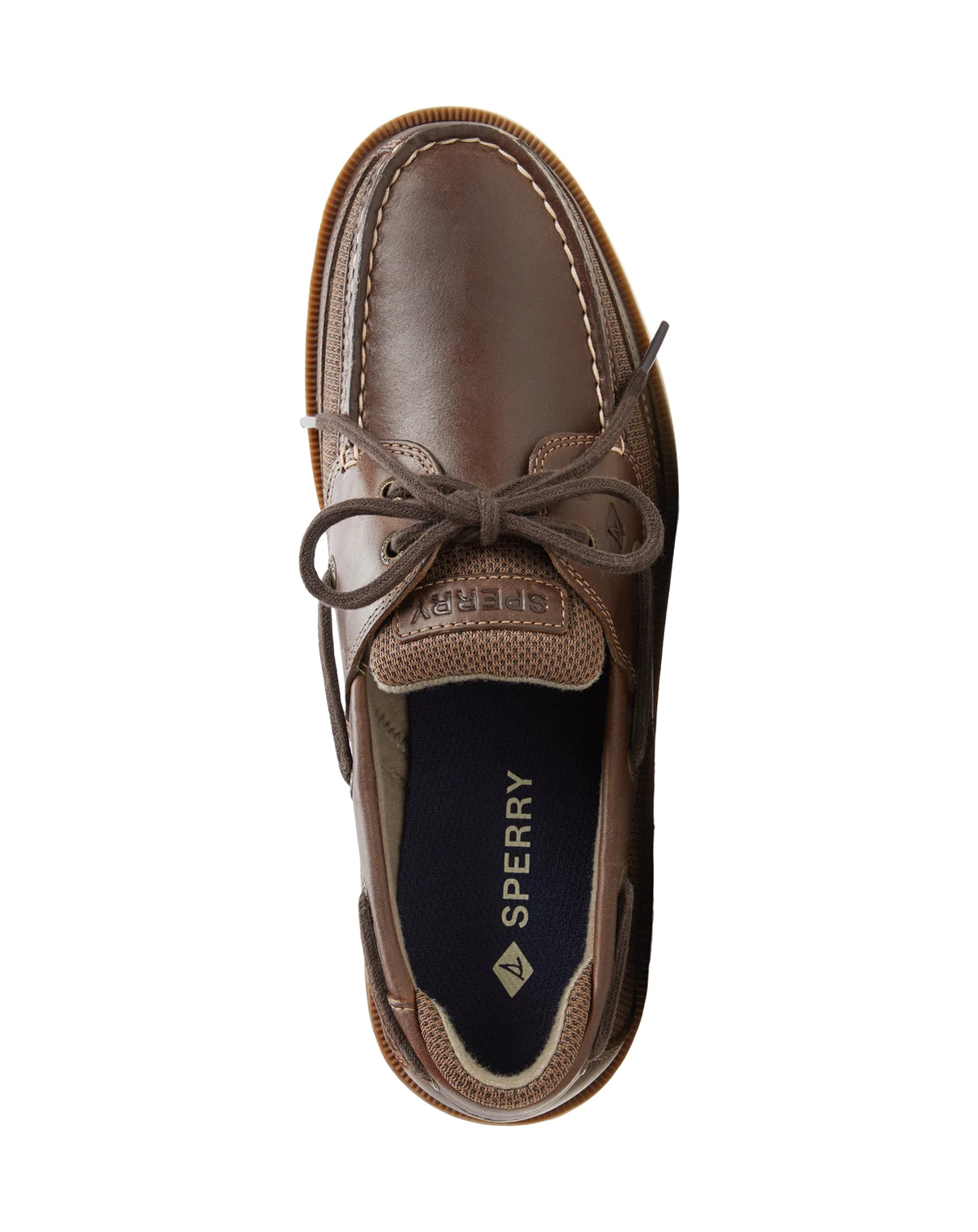 A sporty, supportive take on our iconic boat shoe, the Surveyor 2-Eye boat shoe is equipped for long days on deck. or just on your feet. These reimagined boat shoes are made with full grain leather, mesh panelling and our classic moccasin stitching, with a full-length cushioned midsole and a 360° Lacing System for a comfortable wear. Wear these on deck with slacks or swim shorts, or dress them up for dinner on land with a pair of trousers or jeans.