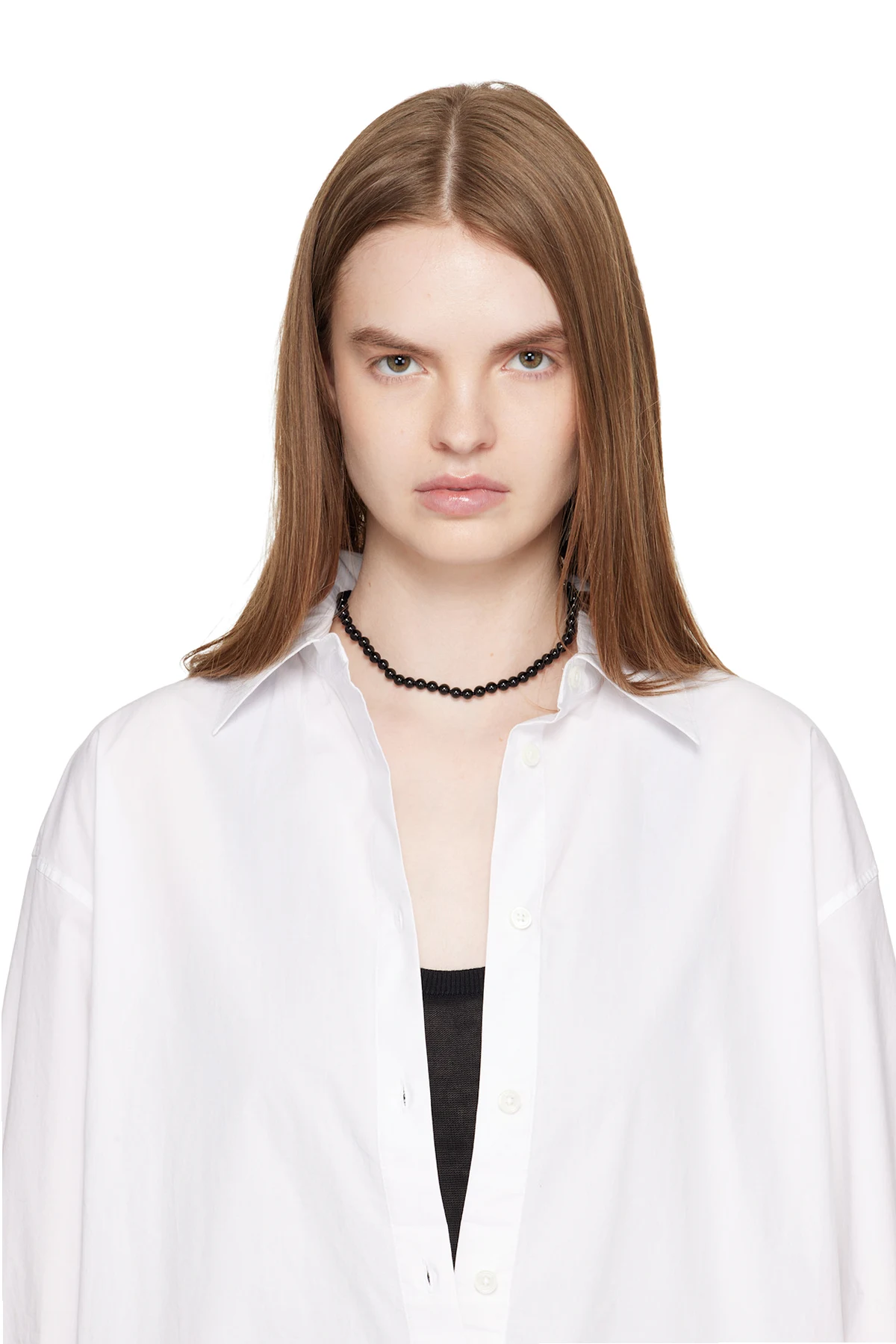 Handcrafted beaded onyx stone necklace in black.