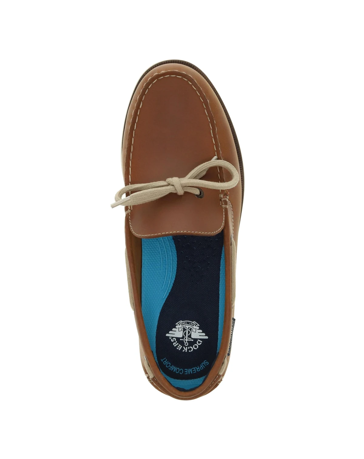 Classic boat shoe design, premium leather uppers, and sophisticated detailing these Dockers shoes blend timeless style and modern innovation. Featuring Dockers Active Rebound outsole and rubber soleplate with water-shedding channels, these men's shoes provide a supportive and responsive experience with every wear. Inside, you'll find the new Supreme Comfort footbed, with a moisture-wicking sock cover and quilted microfiber lining, for superior comfort and relaxation. Sure to impress in any setting or occasion, these Dockers boat shoes showcase a timeless silhouette, detailed stitching, and classic Lace-up closure design. The subtle yet iconic Dockers branding, paired with the high-quality uppers and bold rubber outsole, create a look that seamlessly pairs with any outfit. From Mondays at the office to Fridays by the lake, these shoes are an easy way to add a touch of sophisticated flair to any casual look.