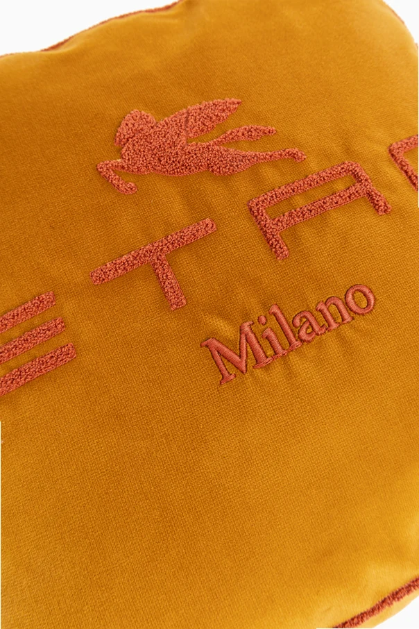 Experience refined sophistication with the ETRO Home Logo Pillow in a timeless square silhouette. This exquisite cushion, crafted from a sumptuous velour-textured fabric composed of premium viscose and cotton, radiates a subtle sheen that bespeaks luxury and tactile elegance. Distinguished by a bold, centrally placed ETRO logo—accompanied by delicate “Milano” script and the iconic Pegasus emblem—each detail is meticulously framed, creating a portrait of minimalist grandeur. The cushion’s superior craftsmanship is underscored by its solid stitching and immaculate finishing, accentuating both its comfort and exclusivity. Designed for those who appreciate contemporary restraint as much as statement design, this piece transforms any space with its unmistakable poise.