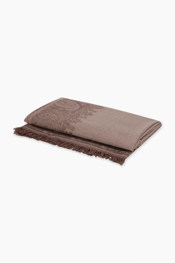 Exuding timeless sophistication, this luxurious patterned throw in elegant gray is a true statement of refined taste. Its classic rectangular silhouette seamlessly complements beds, sofas, or serves as a distinctive decorative accent in curated interiors. The piece is adorned with an intricate paisley pattern, featuring graceful botanical motifs that evoke a sense of artistry and heritage. A wide, detailed border frames the design, underscoring the exceptional craftsmanship.