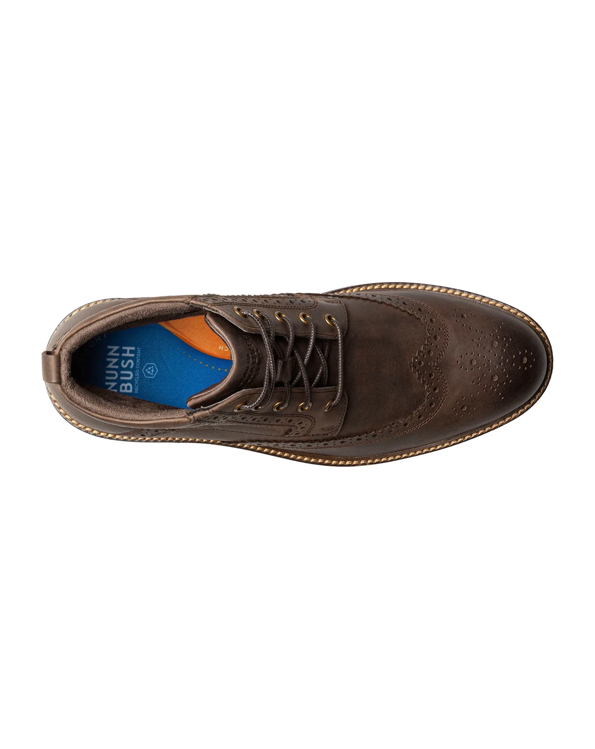 Heavyweight style combines with lightweight construction like an EVA footbed and lightweight sole to form a boot that feels as good as it looks. Casual, contemporary, and versatile, the Nunn Bush Odell II Wingtip Boot is the catch of the season.