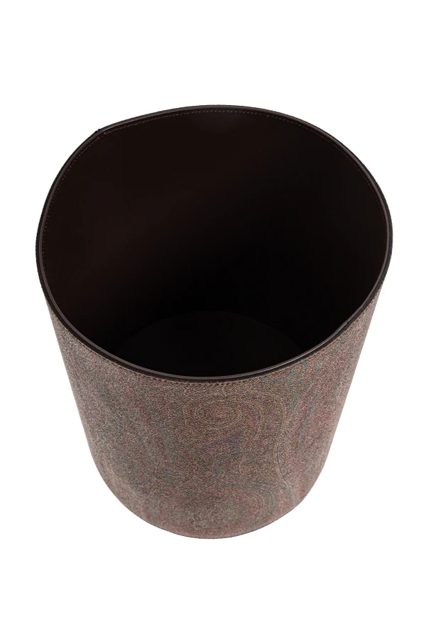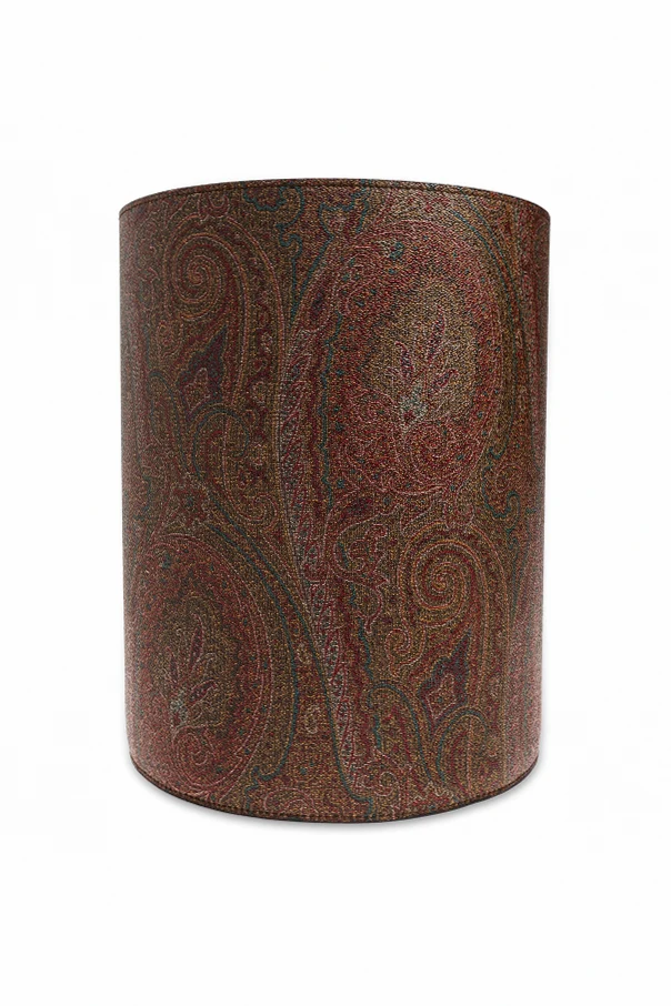 Elevate your interior with this cylindrical waste bin from Etro Home , where artistry meets function. The exterior captivates with an exceptionally intricate, multicolored paisley motif , inspired by luxuriant botanical forms. Every inch is adorned in elaborate, densely-layered patterns, evoking a sense of refined opulence and timeless elegance.