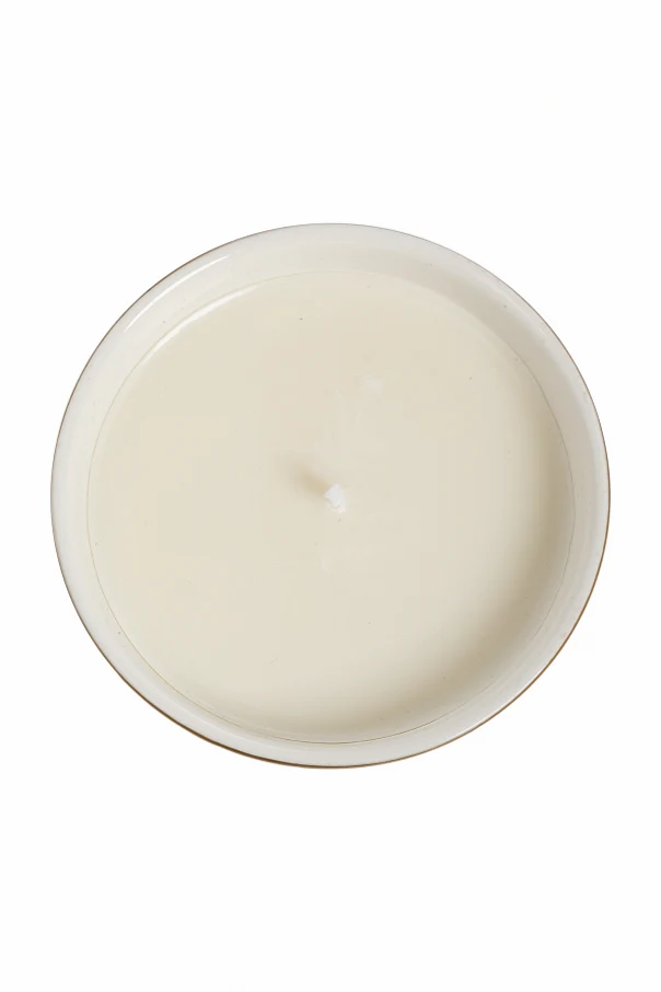 The removable porcelain lid, crowned with an ornate golden finial, preserves the candle’s delicate aroma when not in use and provides a delightful decorative accent. Inside awaits a single creamy-hued paraffin candle, elegantly centered by one wick to ensure an even, soothing glow.