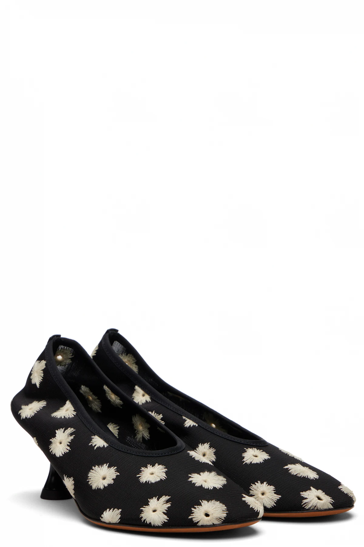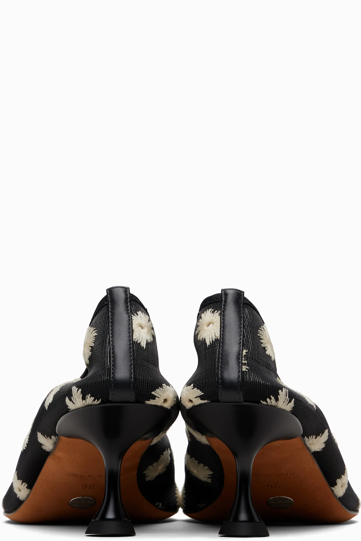 Black Tee Embroidered Pump Heels