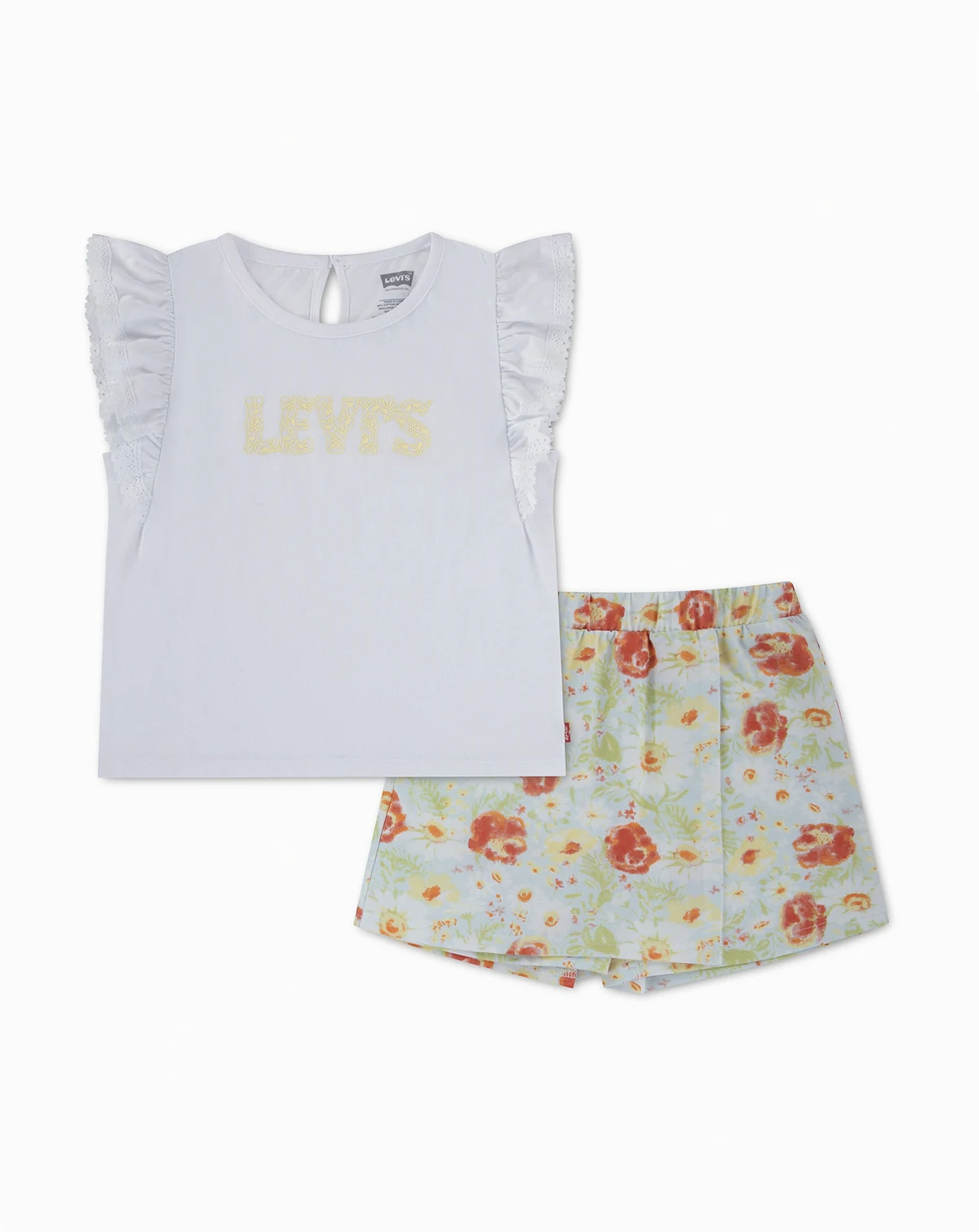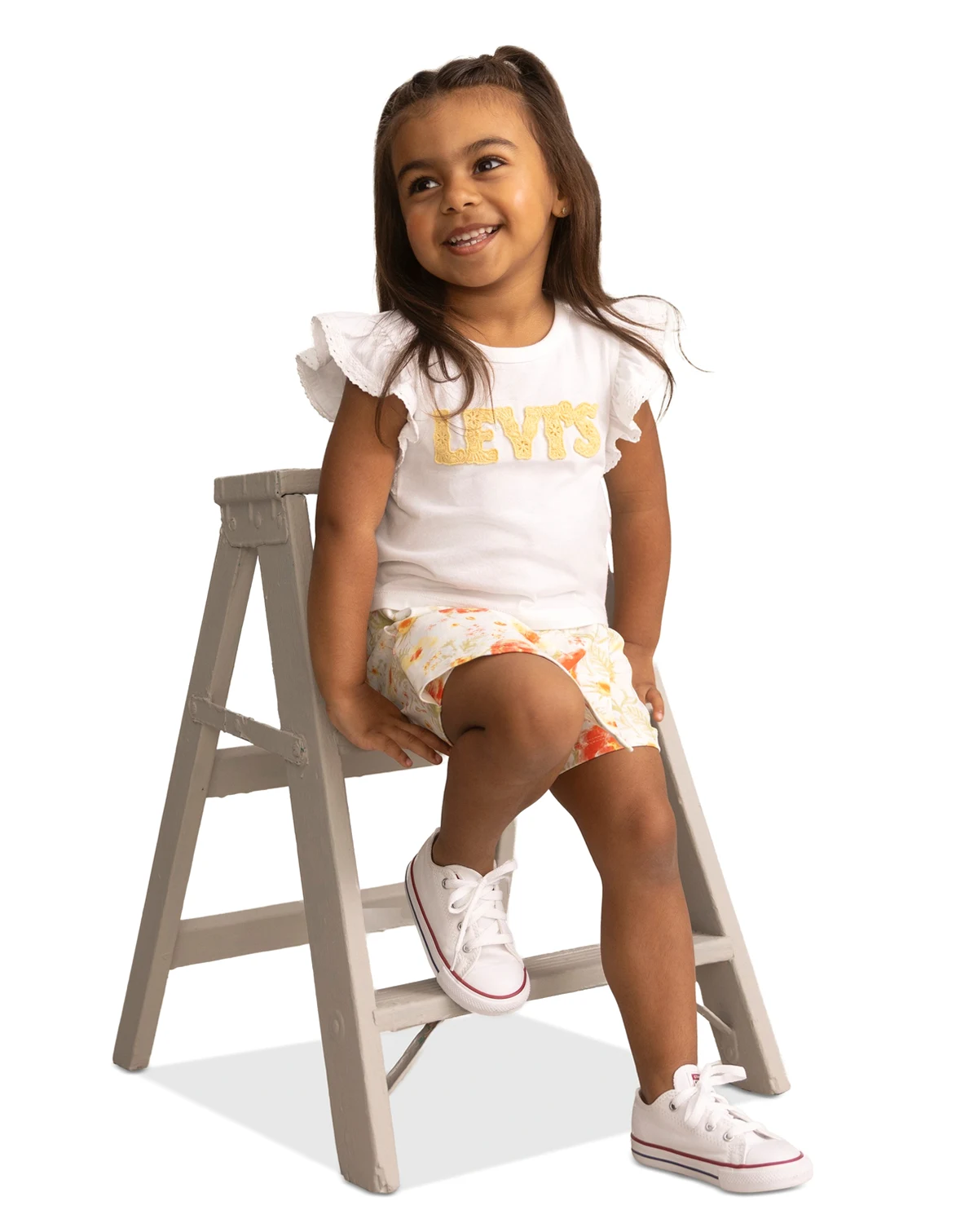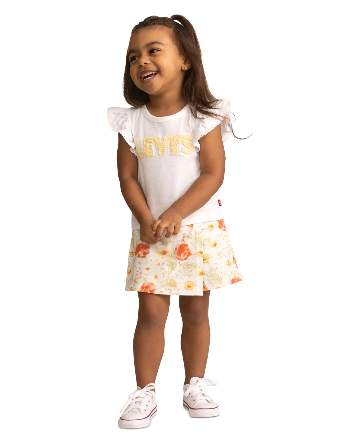 Enjoy sweet charm in this 2-piece set from Levi's, featuring a ruffle-sleeve knit top. The matching printed skort creates a comfy, adorable outfit for playful adventures.
