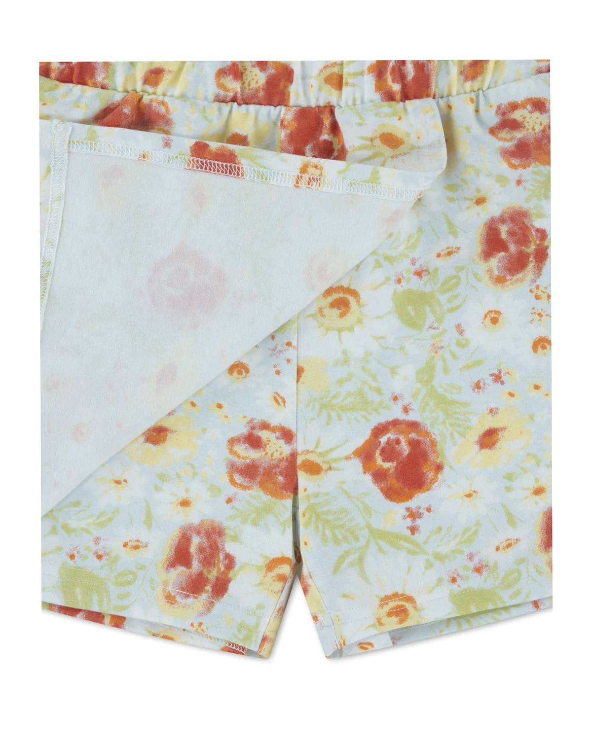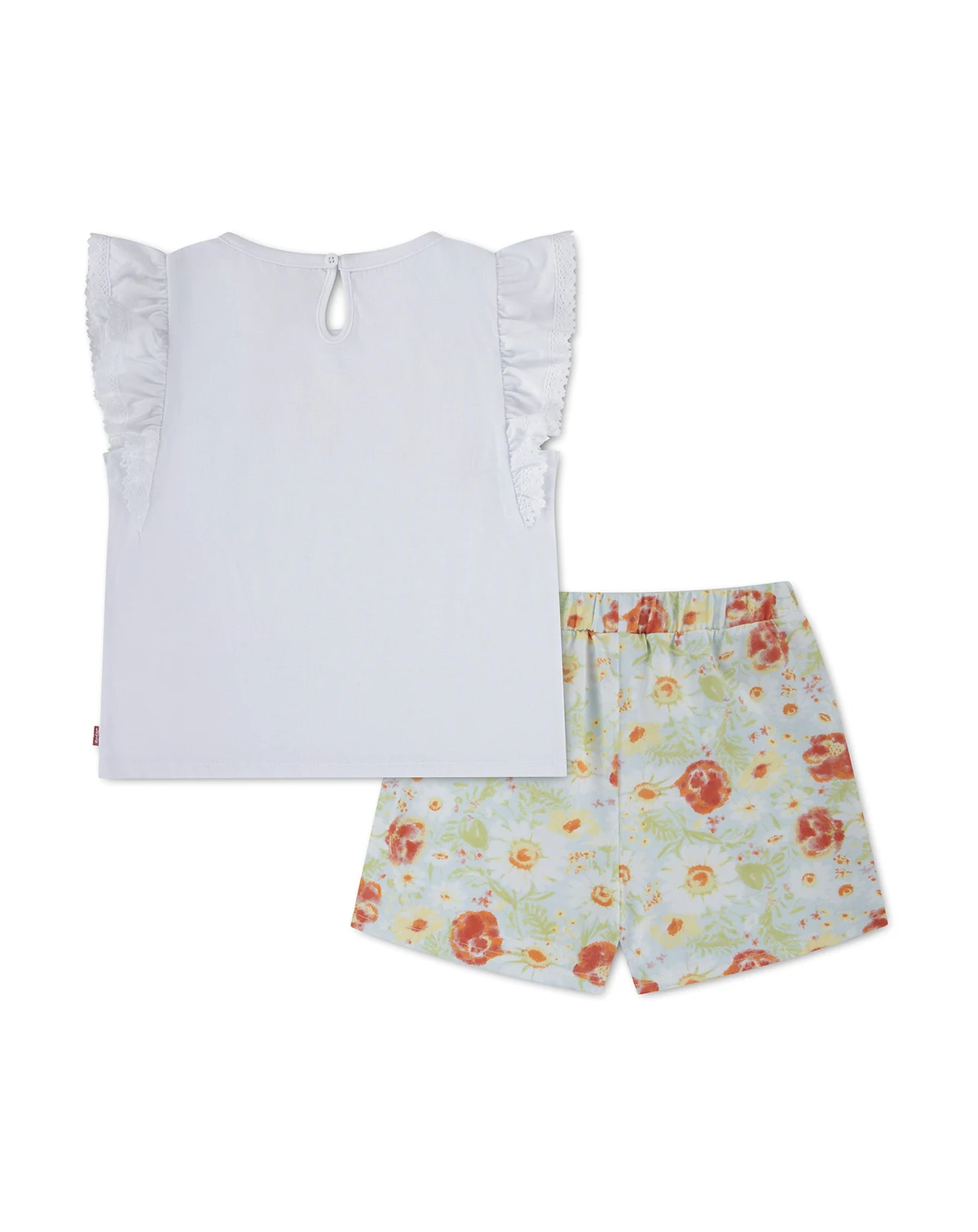 Top; cotton jersey fabric; ruffle sleeves; round neck; Levi's graphic on the front; Top: 60% cotton, 40% polyester; skort: 95% cotton, 5% elastane; Skort: cotton stretch jersey fabric; elastic waistband; all-over floral print; built-in shorts