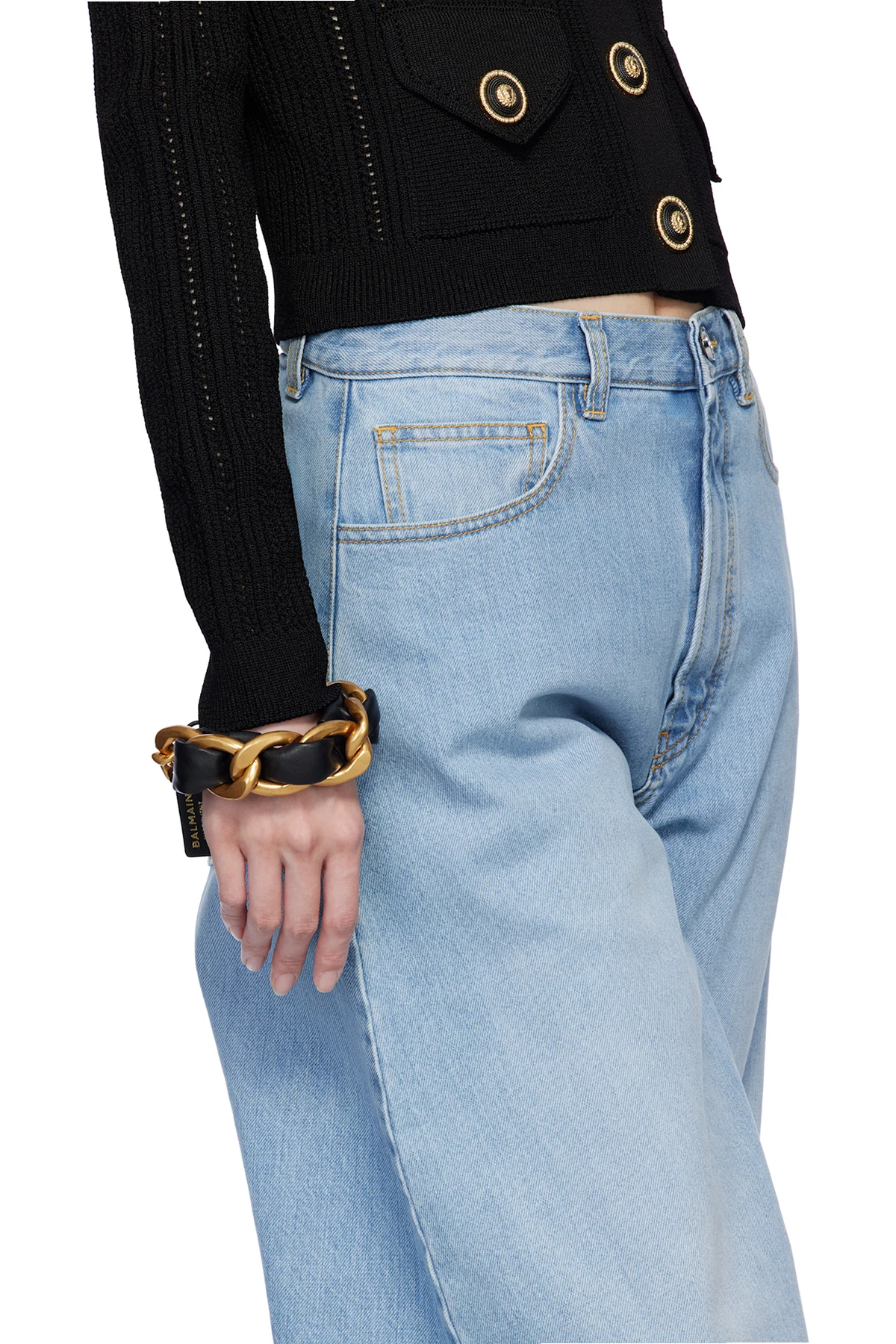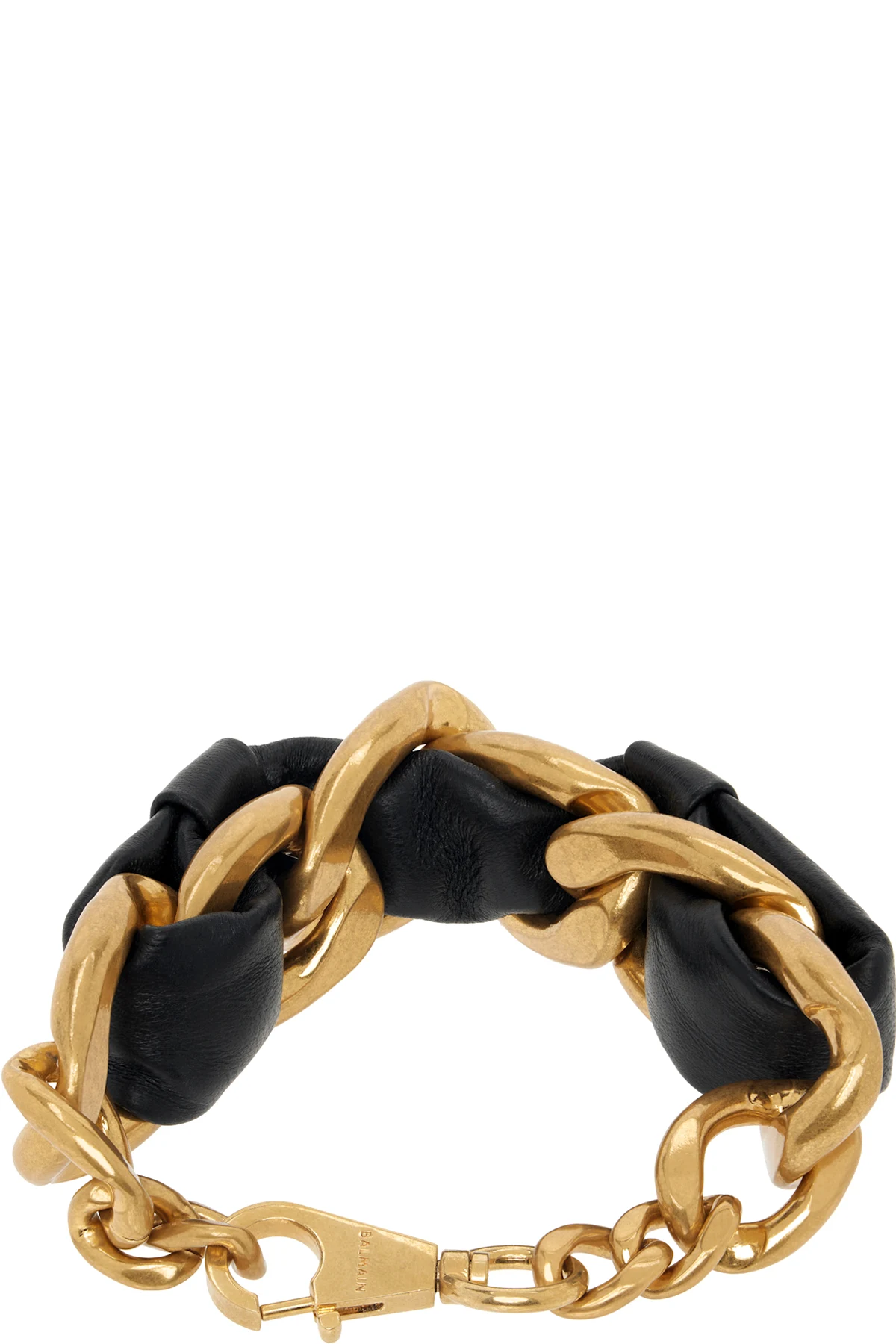 4. Gold & Black 1945 Soft Chain & Leather Bracelet