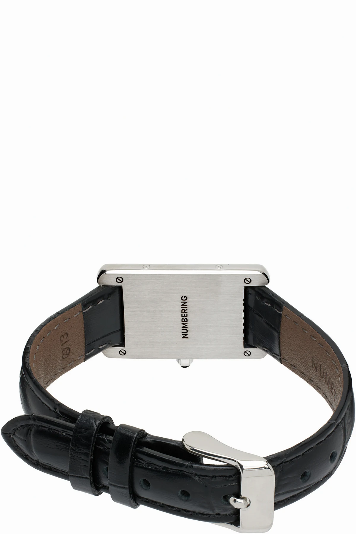 Croc-embossed leather bracelet in black.