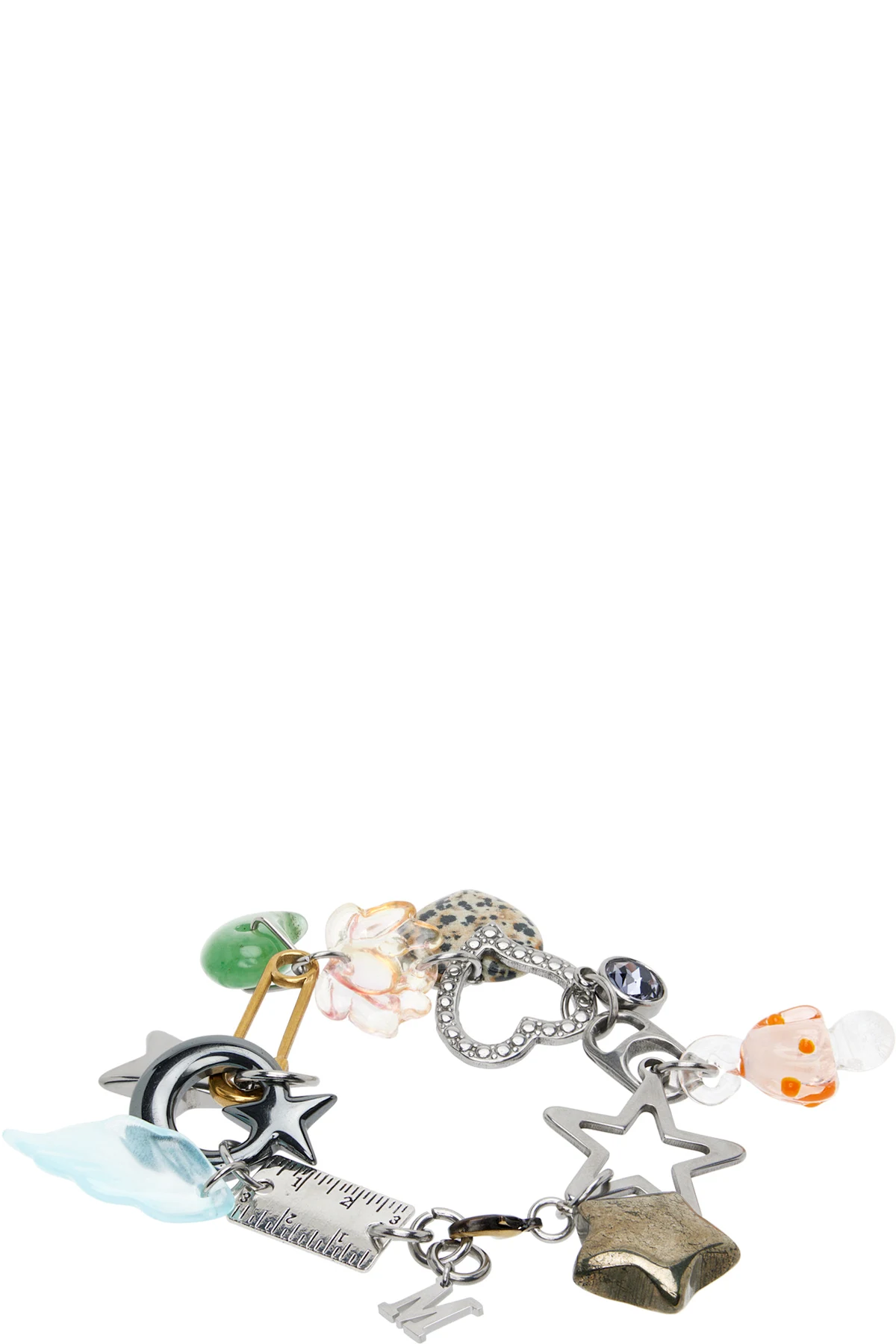 Modified cable chain bracelet in silver- and gold-tone stainless steel.