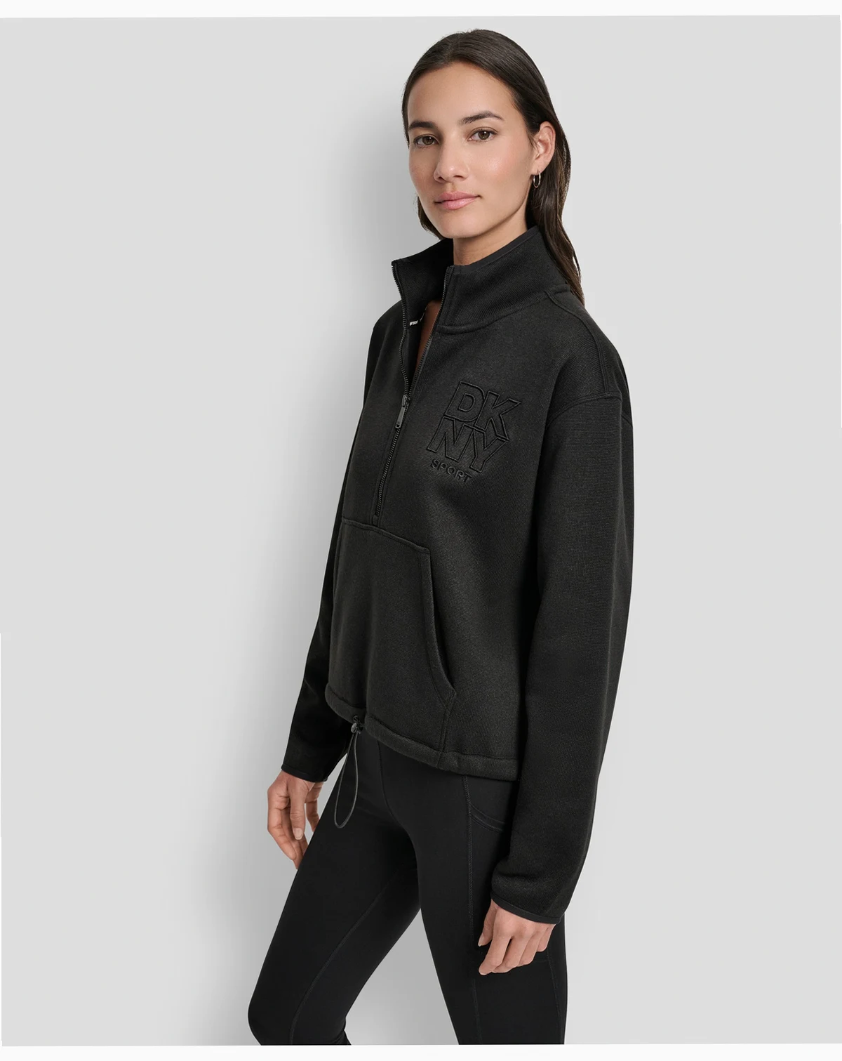 Stay comfortable and stylish in this half-zip top by DKNY, featuring a collared neck and outlined embroidery. The relaxed fit and long sleeves are great for everyday wear.