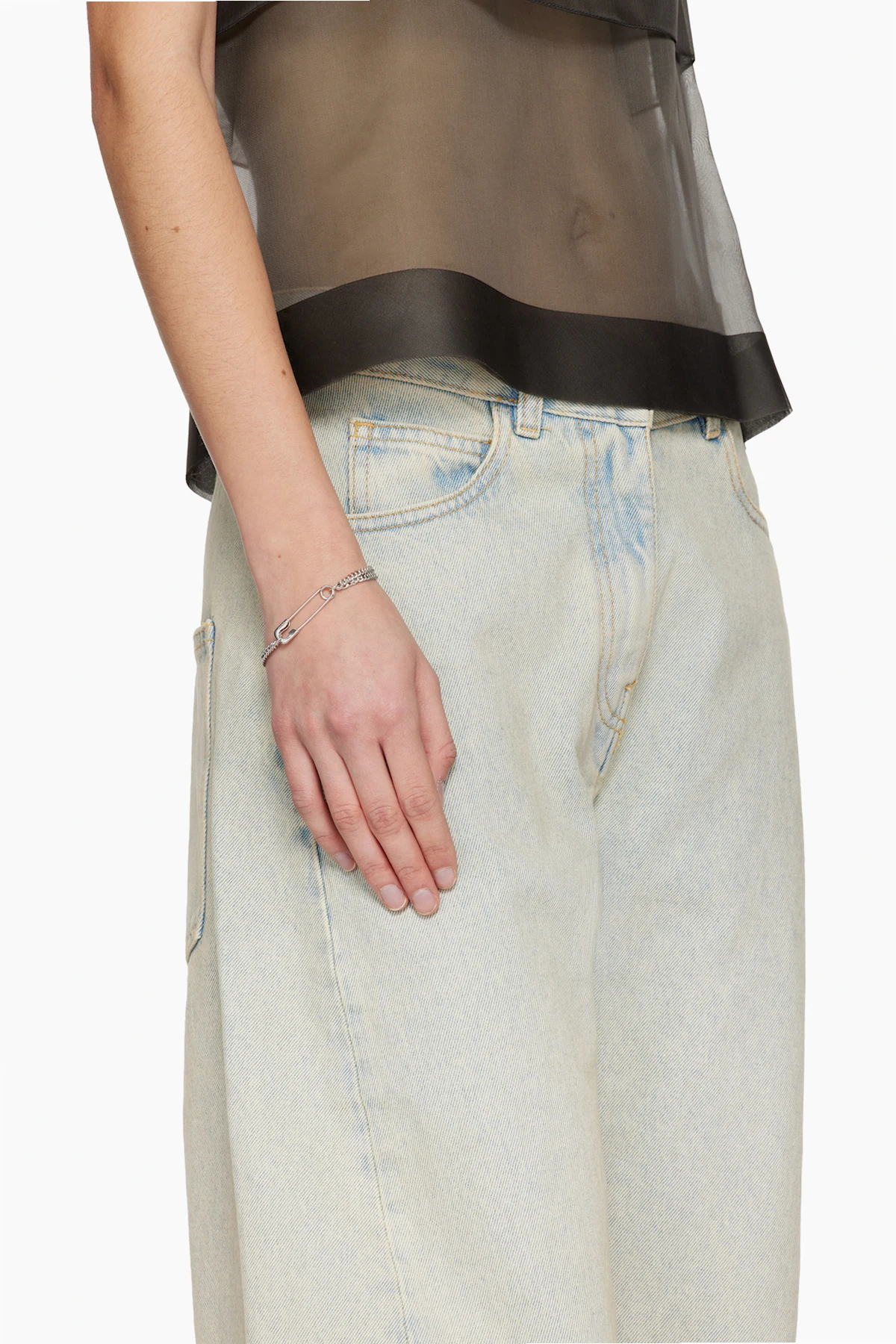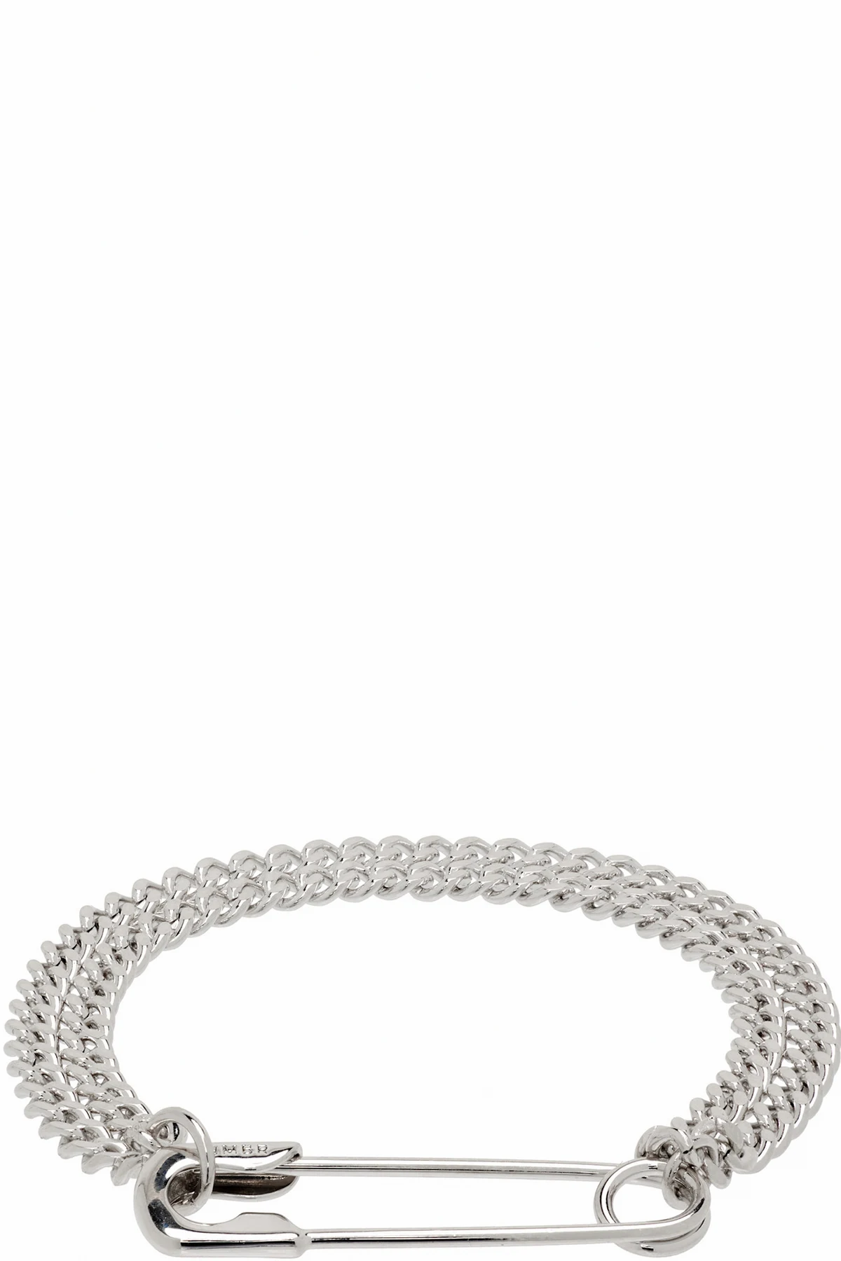 Tiered curb-chain bracelet in silver-tone rhodium-plated brass. Safety pin fastening.