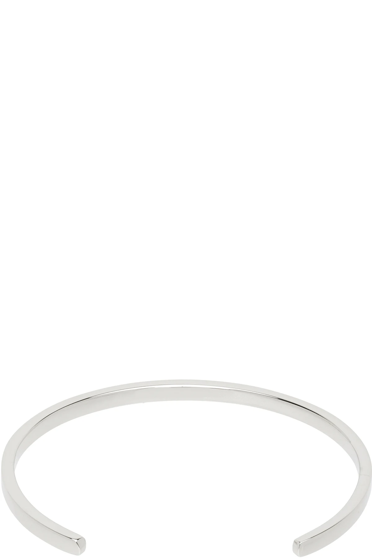 Open-cuff bracelet in silver-tone brass. Logo engraved at face.