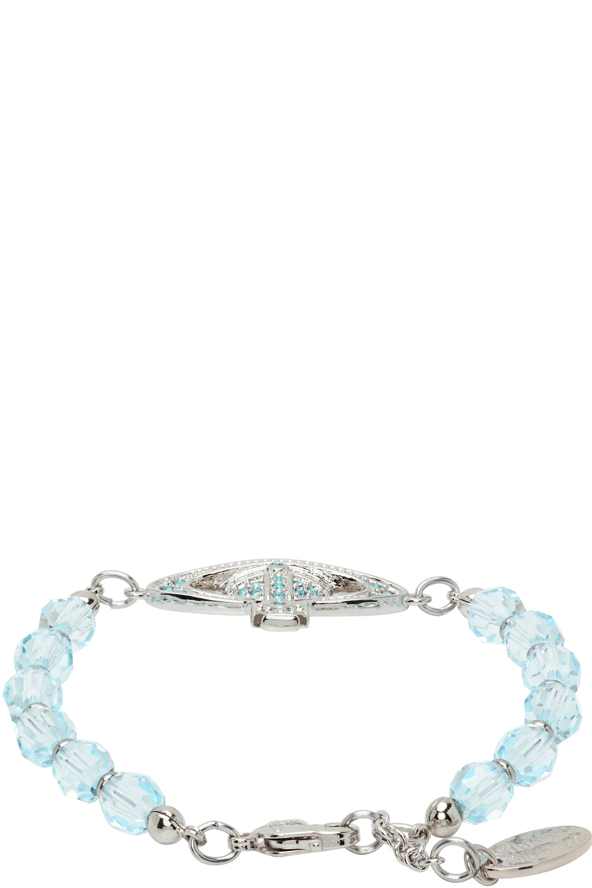 Beaded glass and brass bracelet in blue and silver-tone.