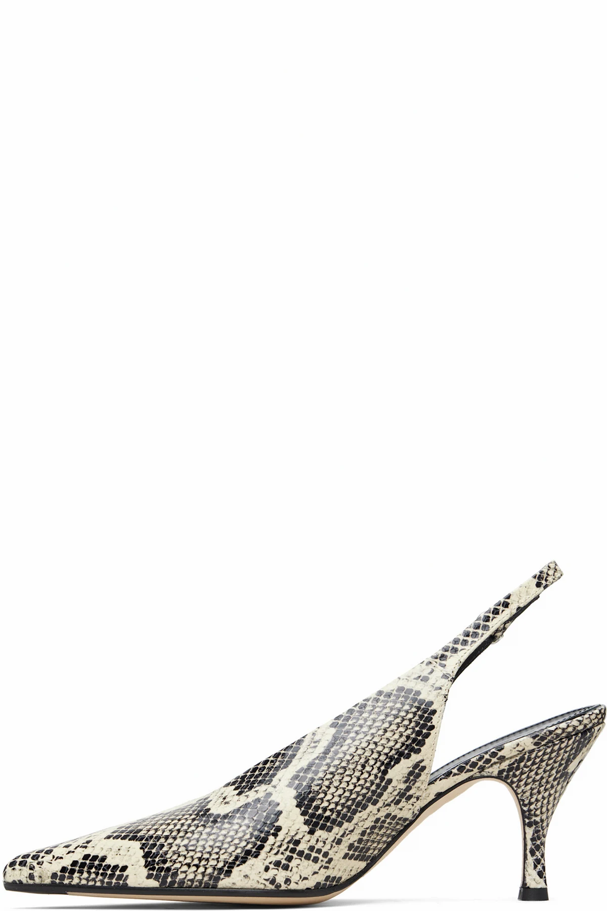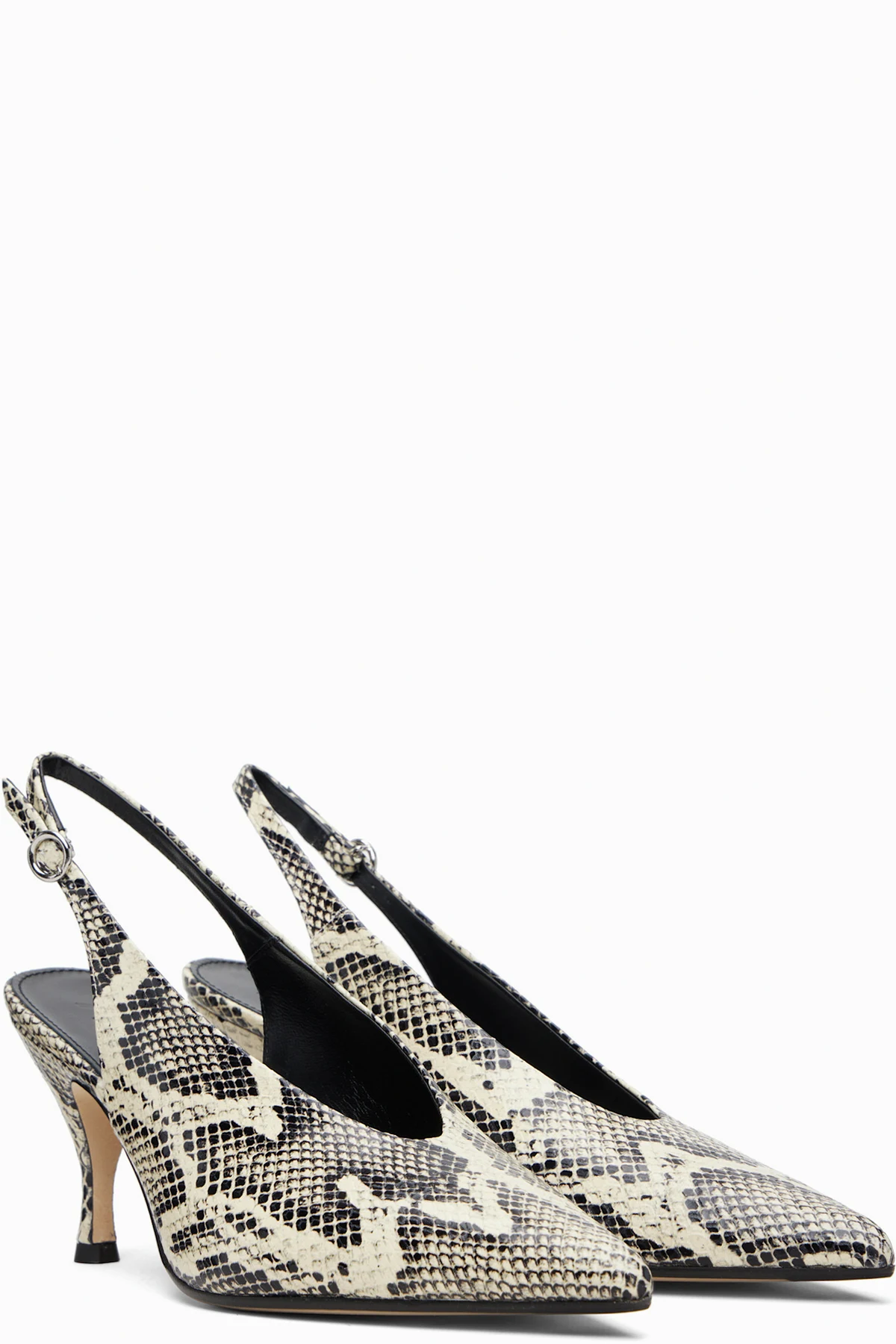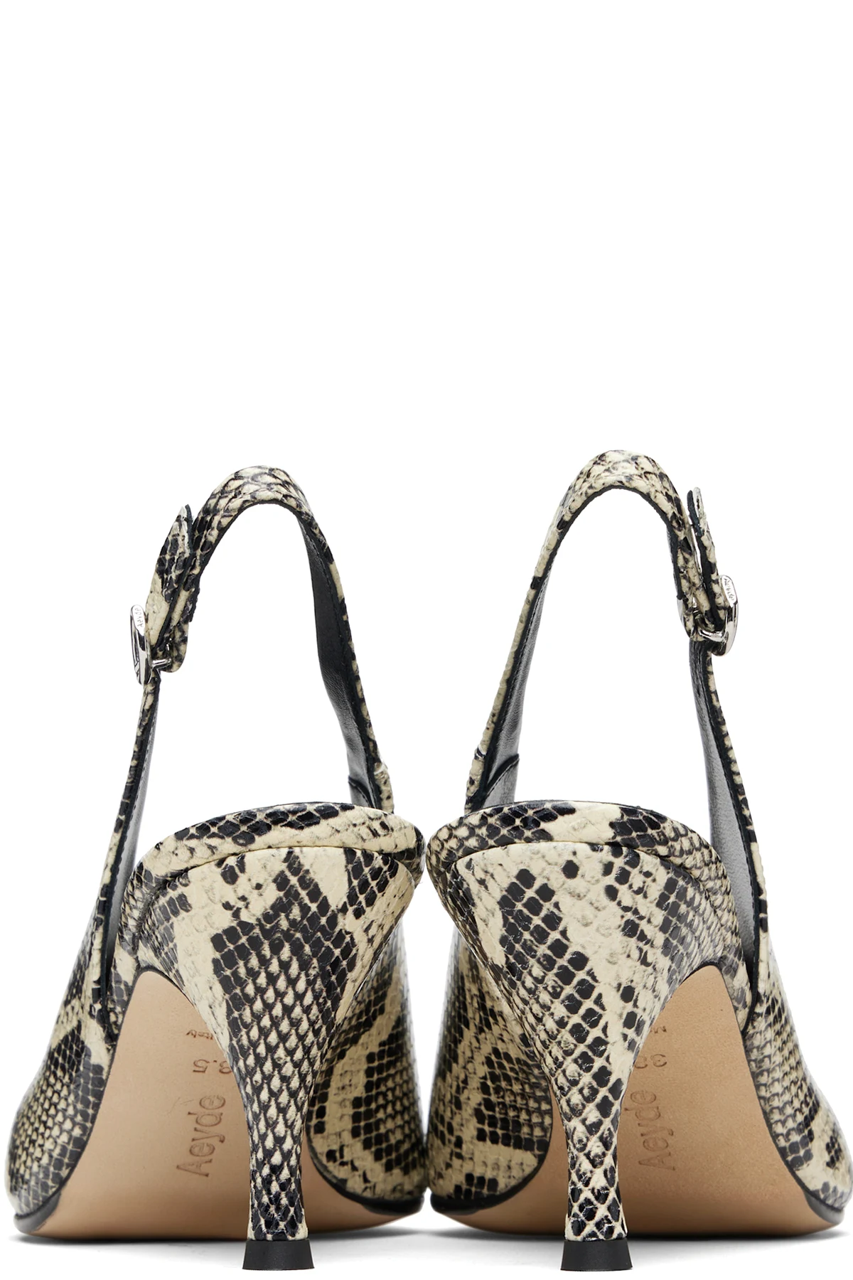 Snake-embossed calfskin heels.