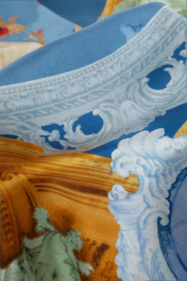 Discover sophistication with the "Affresco" Scarf by Versace—a timeless square accessory crafted for those who seek allure in every detail. Showcasing a resplendent, multicolored pattern inspired by monumental fresco art, the surface features an exquisite interplay of architectural motifs, sculptural fragments, and baroque ornamentation, all evoking a sense of classical grandeur reimagined for the modern era.