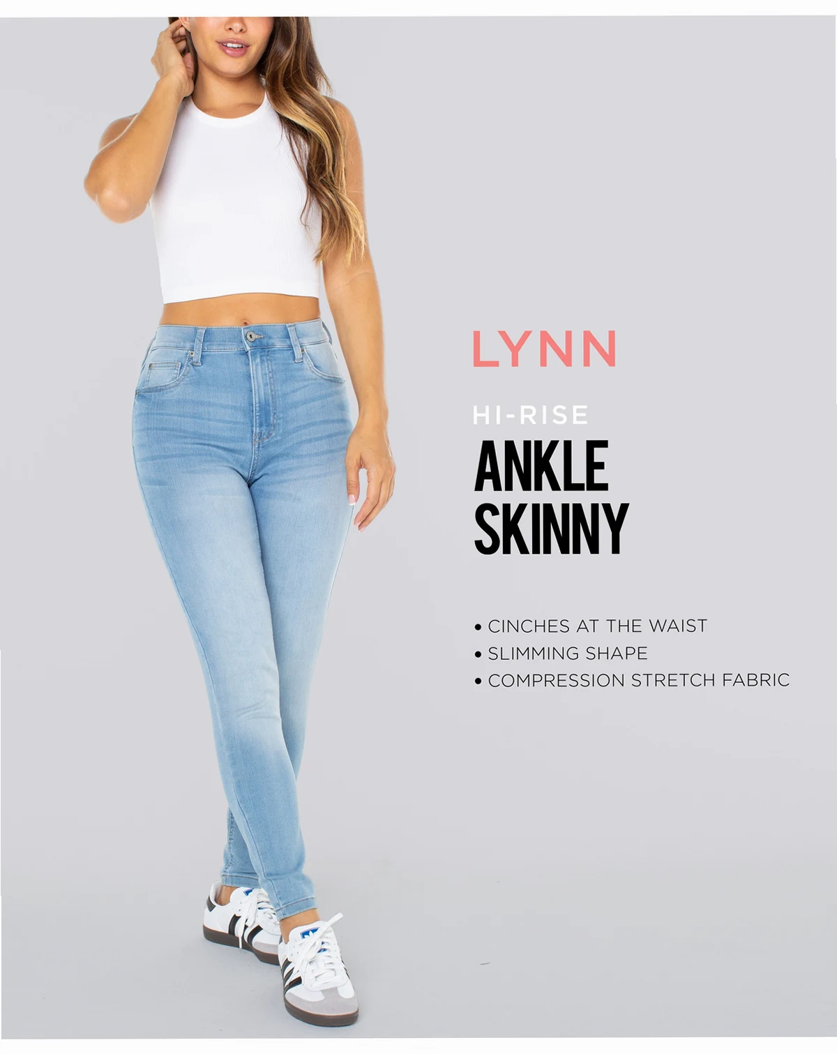 Approx. model height is 5'10" and she is wearing a size 5; Approx. model height is 5'10" and she is wearing a size 18W; Approx. inseam: 28"; plus size approx. inseam: 27"; High rise: approx. 10-1/2", leg opening: 9"; plus size rise: approx. 13", plus size leg opening 11"; Available in regular and plus sizes