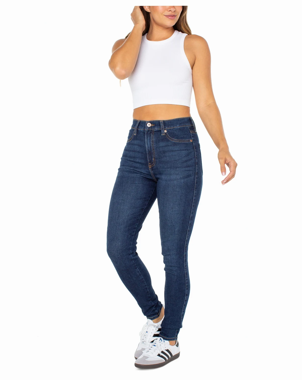 Approx. model height is 5'9-1/2" and she is wearing a size 7; Approx. inseam: 29"; High rise: approx. 11"; leg opening: 9-1/4"; skinny leg