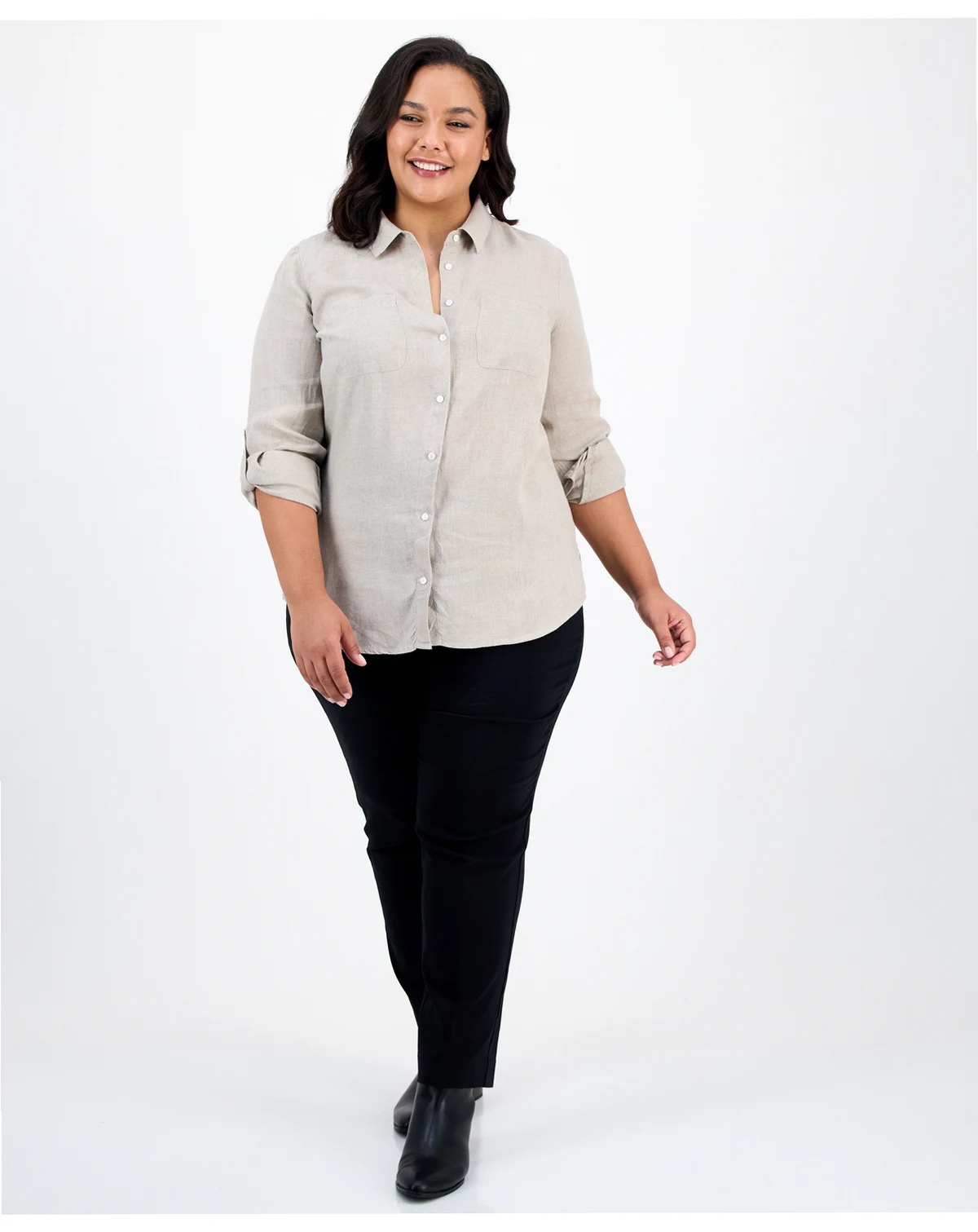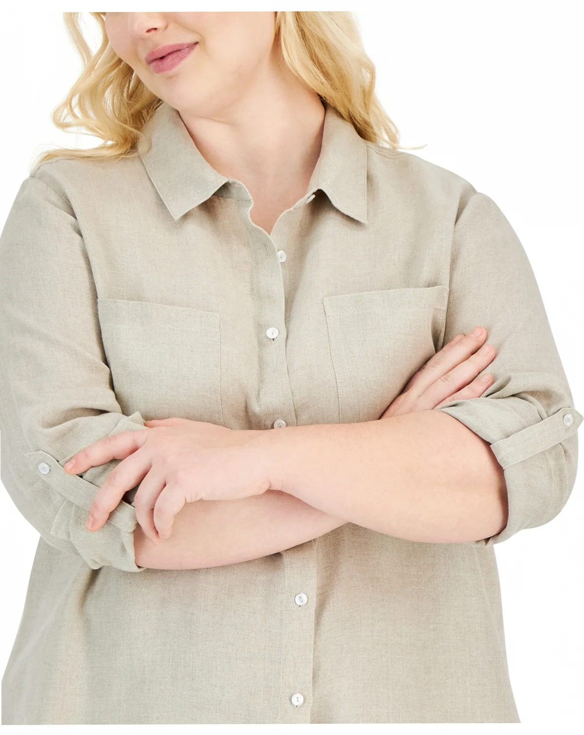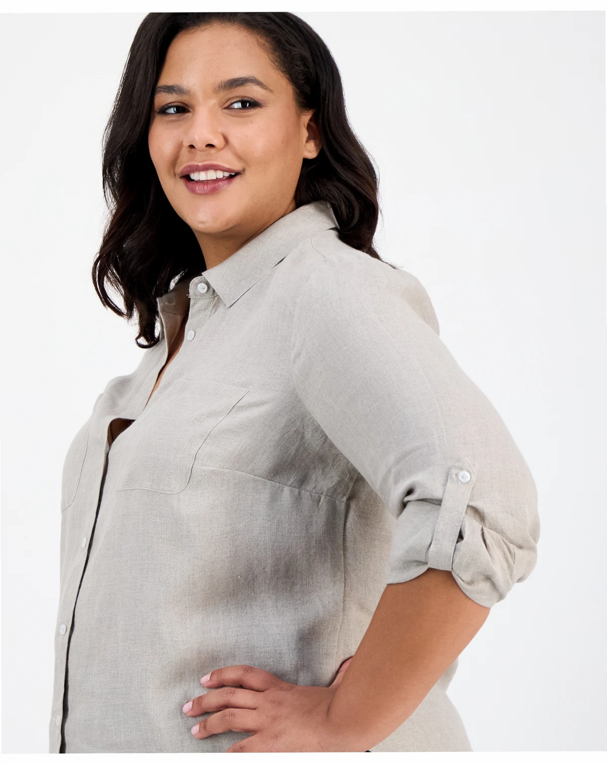 Charter Club's versatile shirt works wonders in your wardrobe with clever roll-tab sleeves in lightweight linen.