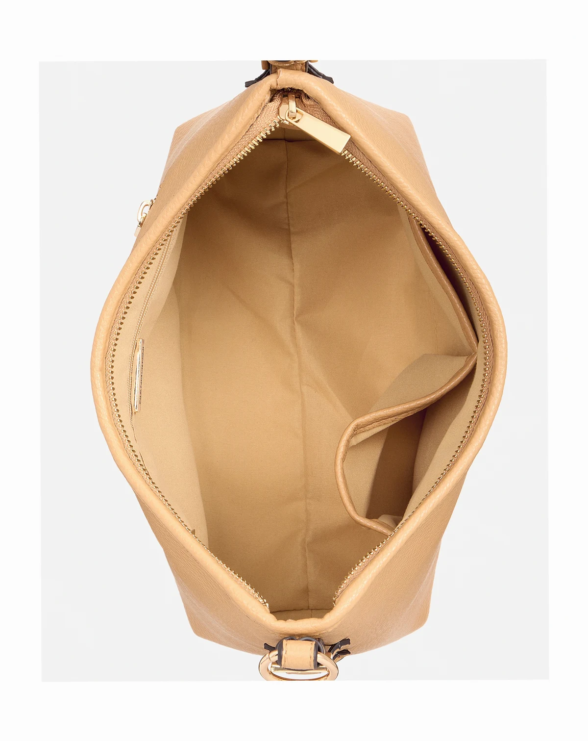 Size_and_fitMedium-sized bag; 12"W x 9-2/5"H x 5"D (width is measured across the bottom of handbag); 1.25 lbs. approx. weight ; Silhouette is based off 5'9" model