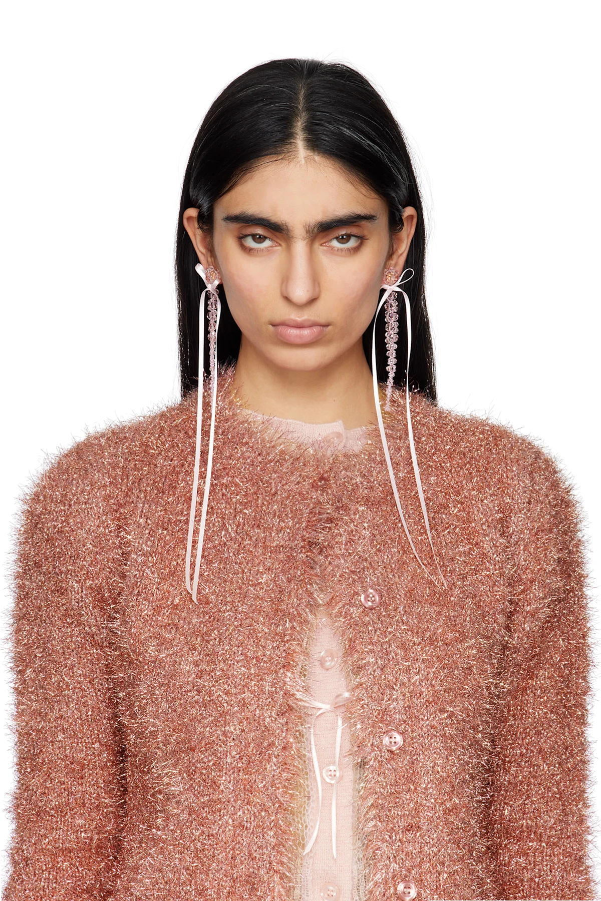 Pink Slim Bow Ribbon Drip Earrings