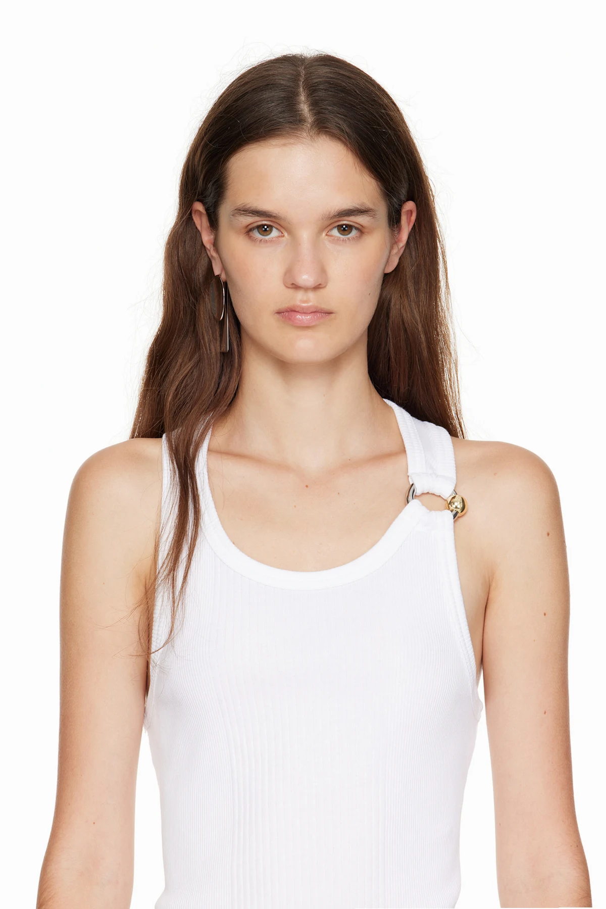Single drop earring in silver-tone brass.