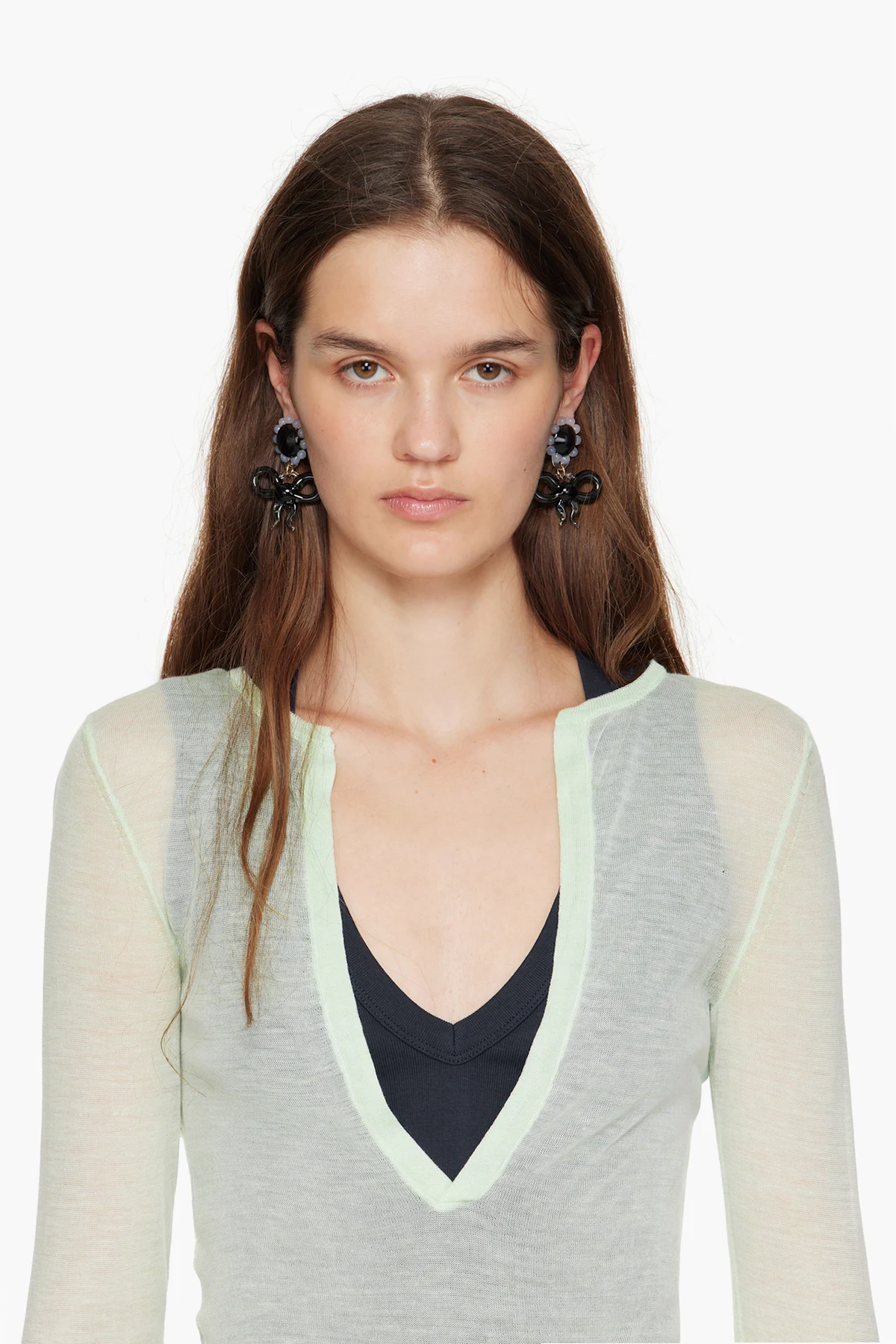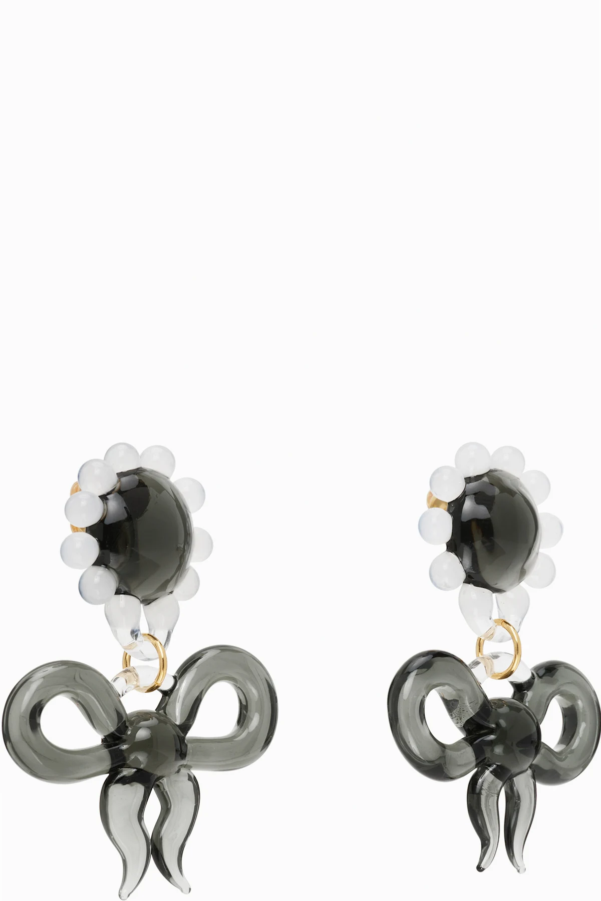 Pair of handcrafted borosilicate glass stud earrings in tones of gray.