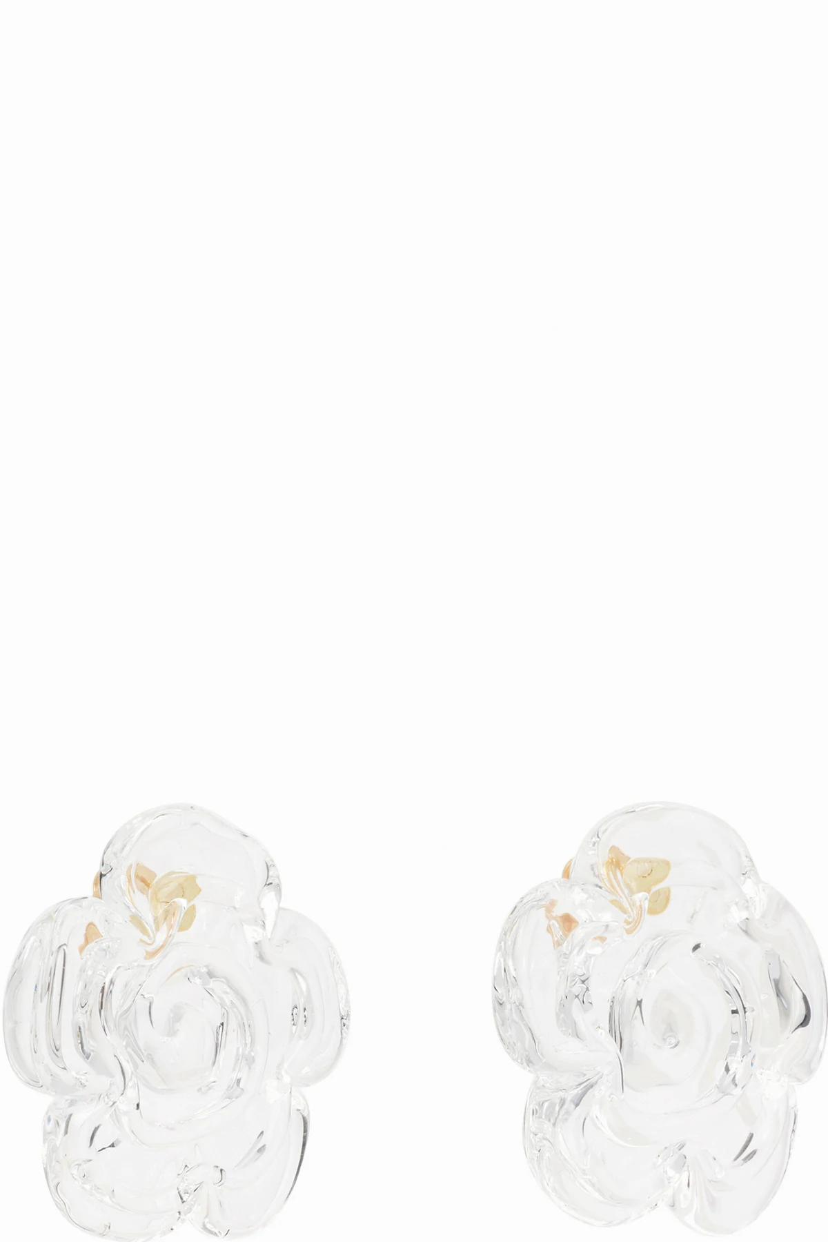 Pair of handcrafted stud earrings in transparent borosilicate glass.