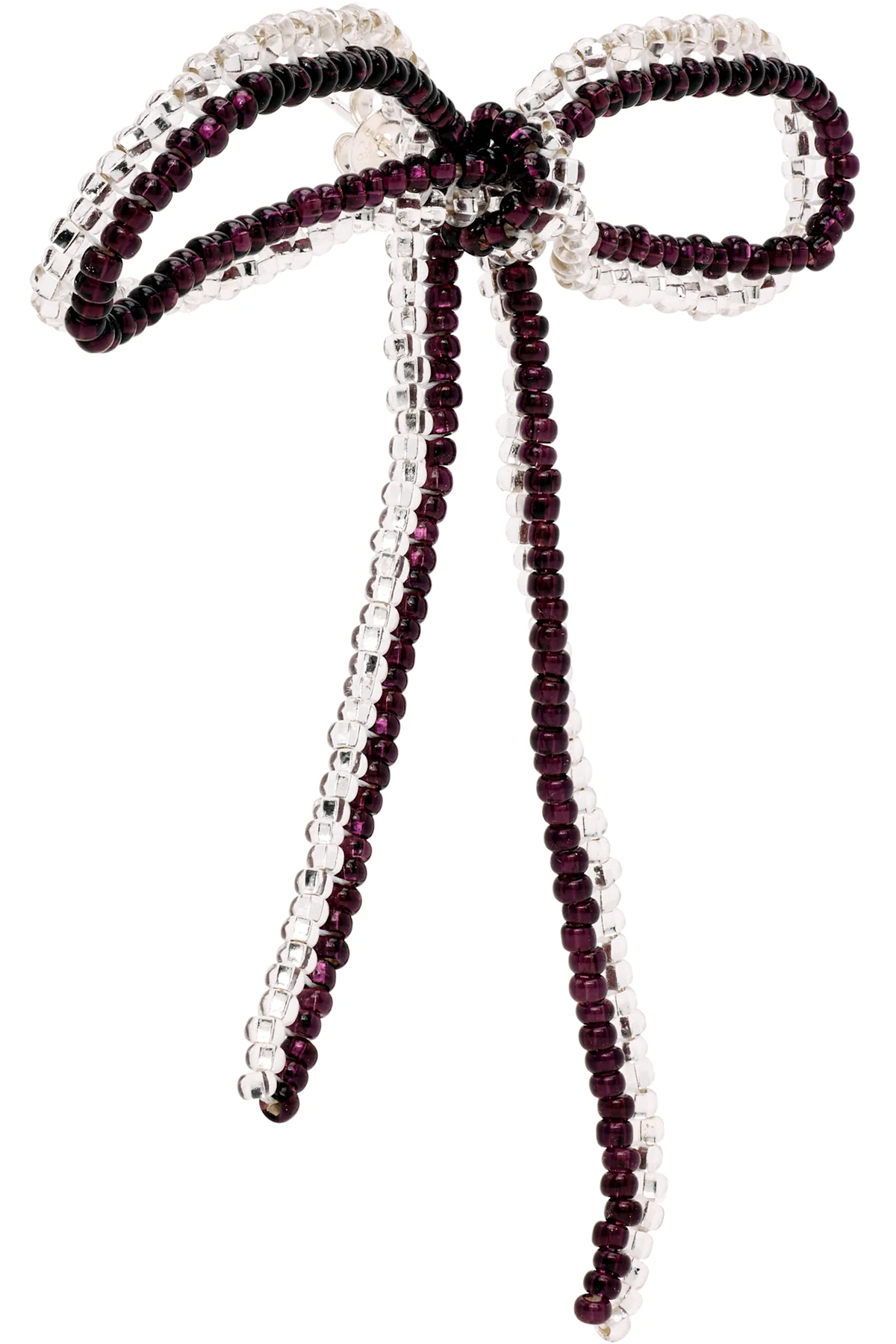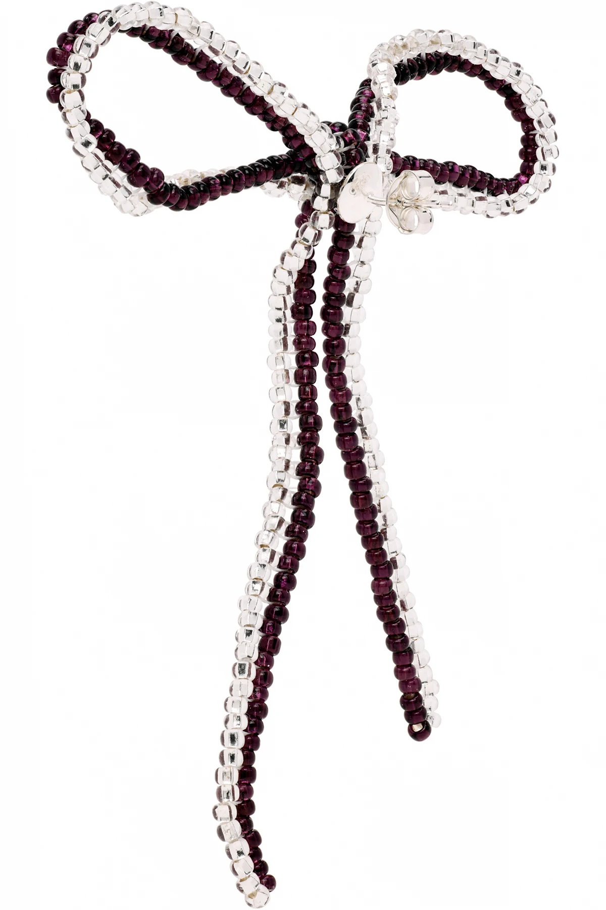 Single handcrafted beaded glass drop earring in purple.
