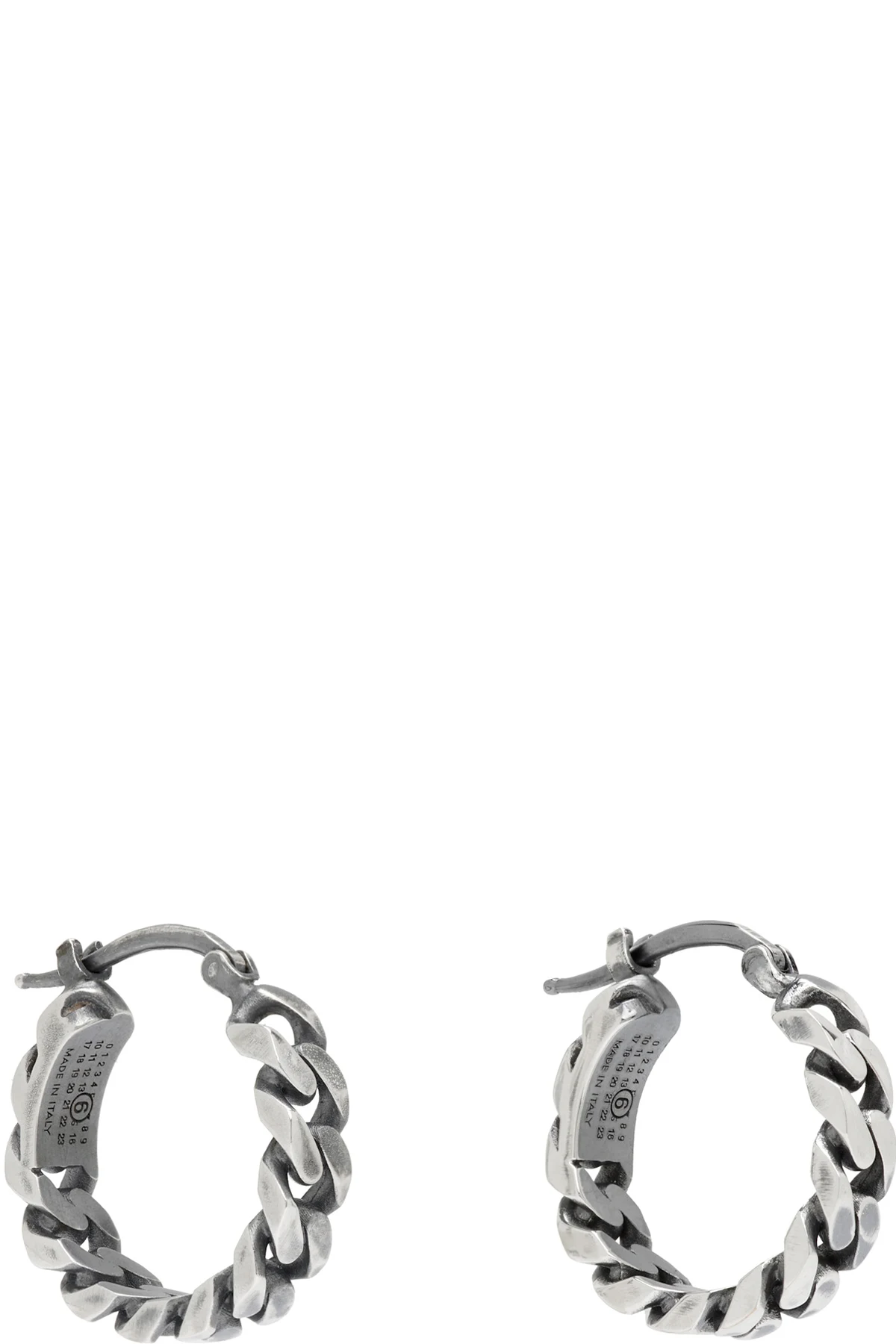 Pair of curb chain hoop earrings in sterling silver-plated brass.