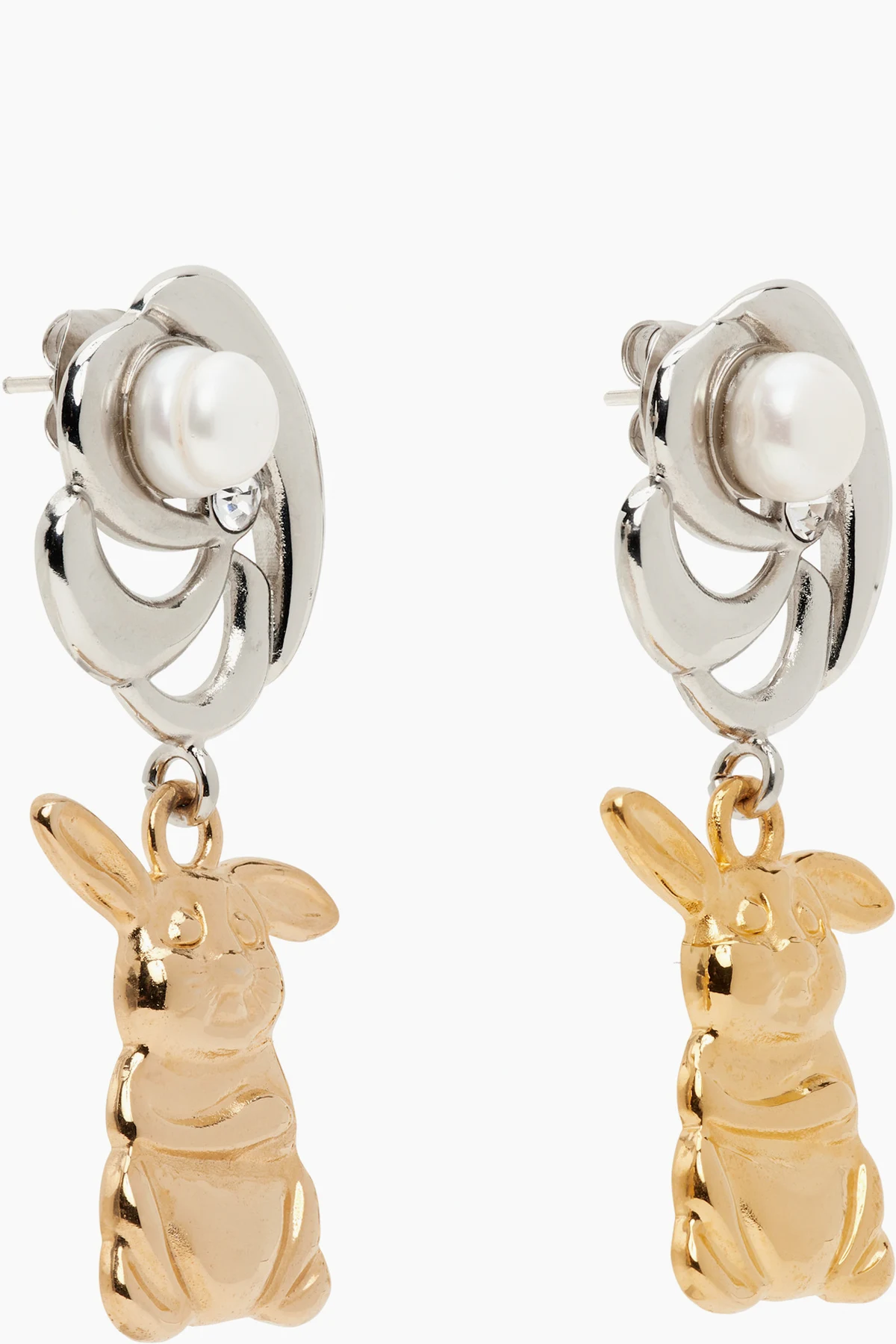 Pair of drop earrings in silver-tone palladium-plated brass.