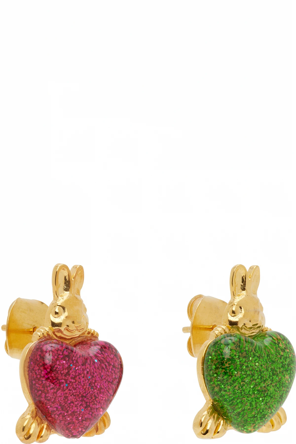Pair of drop earrings in gold-tone palladium-plated brass.