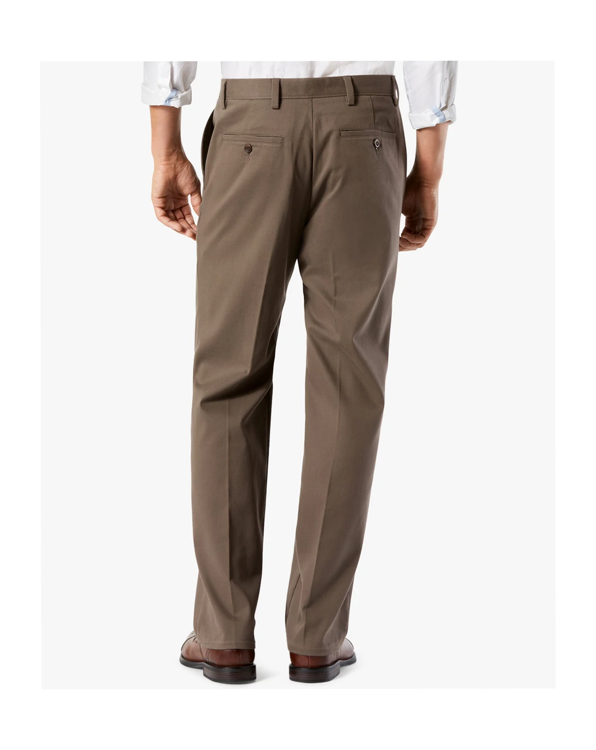 Be office-ready in Dockers® khaki pants, featuring a comfort waistband and stretch fabric.