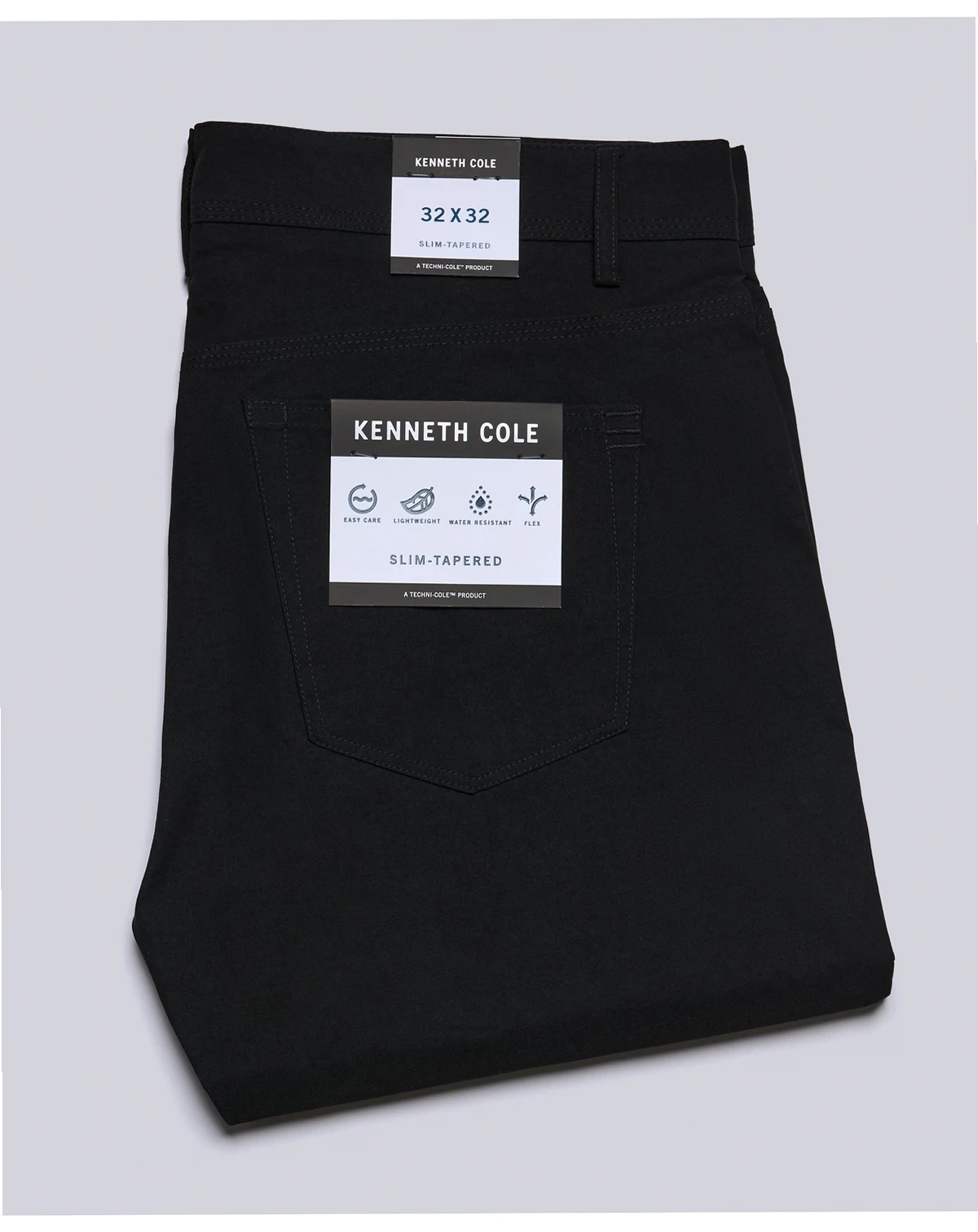 Move easily in a style tailor-made for you with this pair of water-resistant, two-way flex pants from Kenneth Cole. Cut for a slim-fit, they have a button-zip fly, and a tapered-leg finish