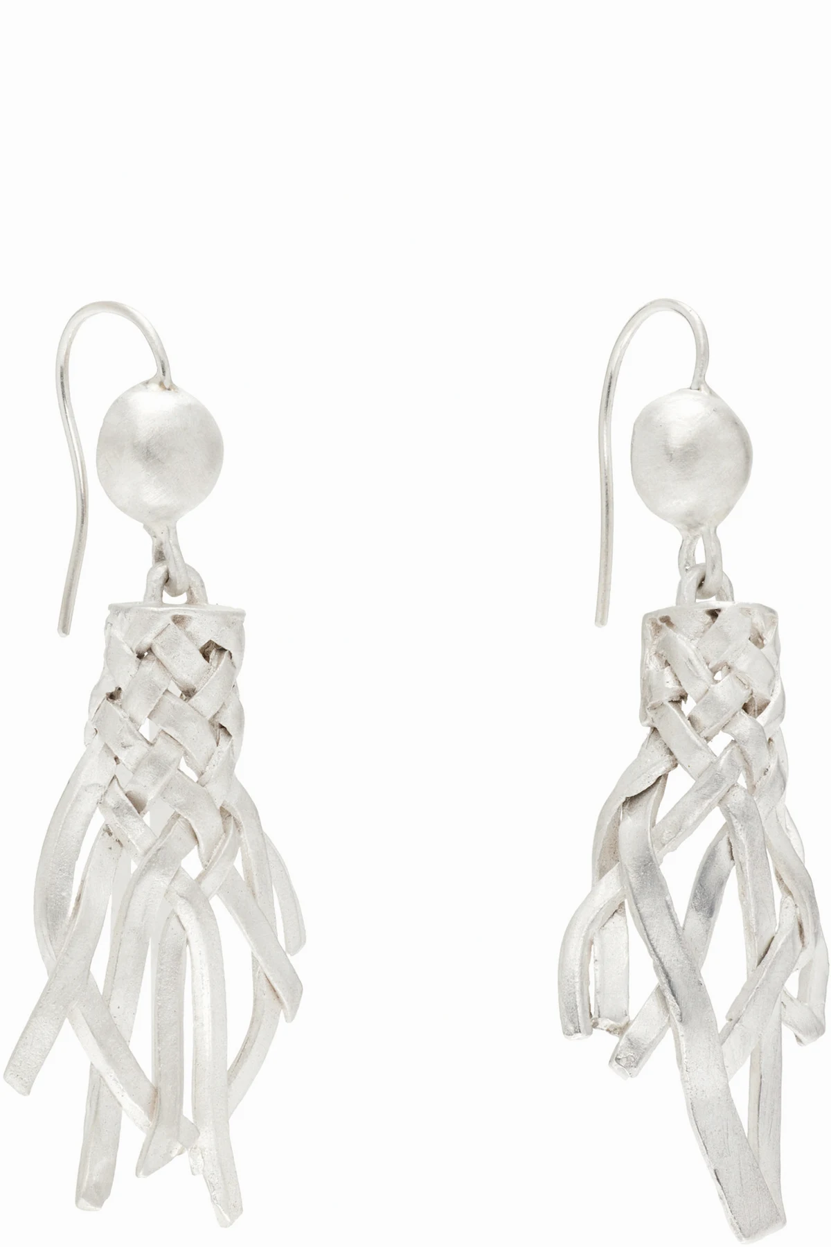 Pair of drop earrings in brushed sterling silver.