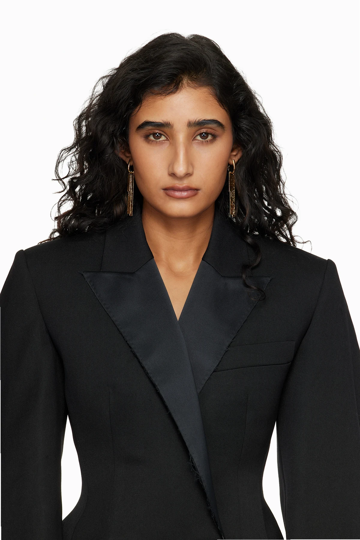 Pair of drop earrings in gold-tone brass.