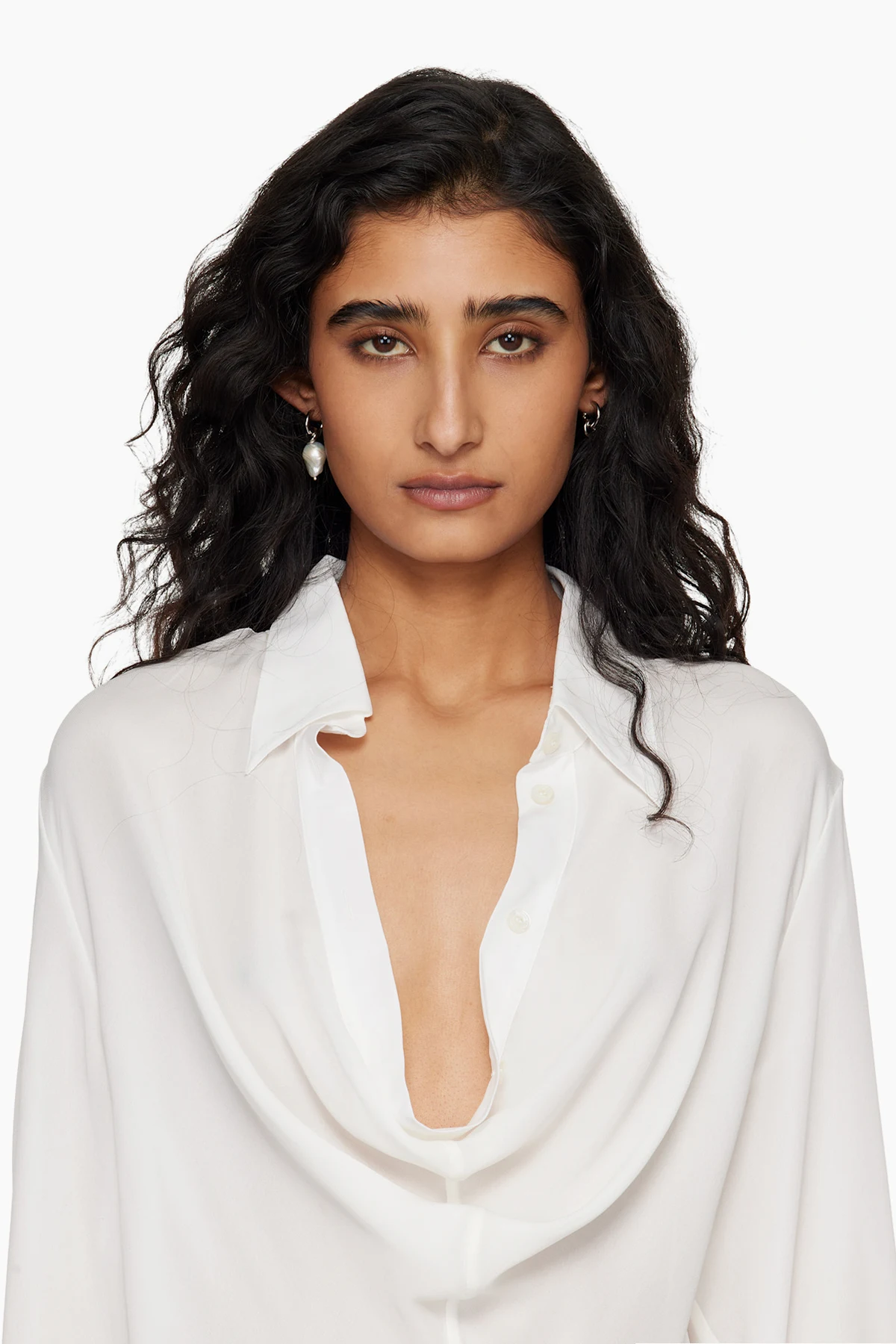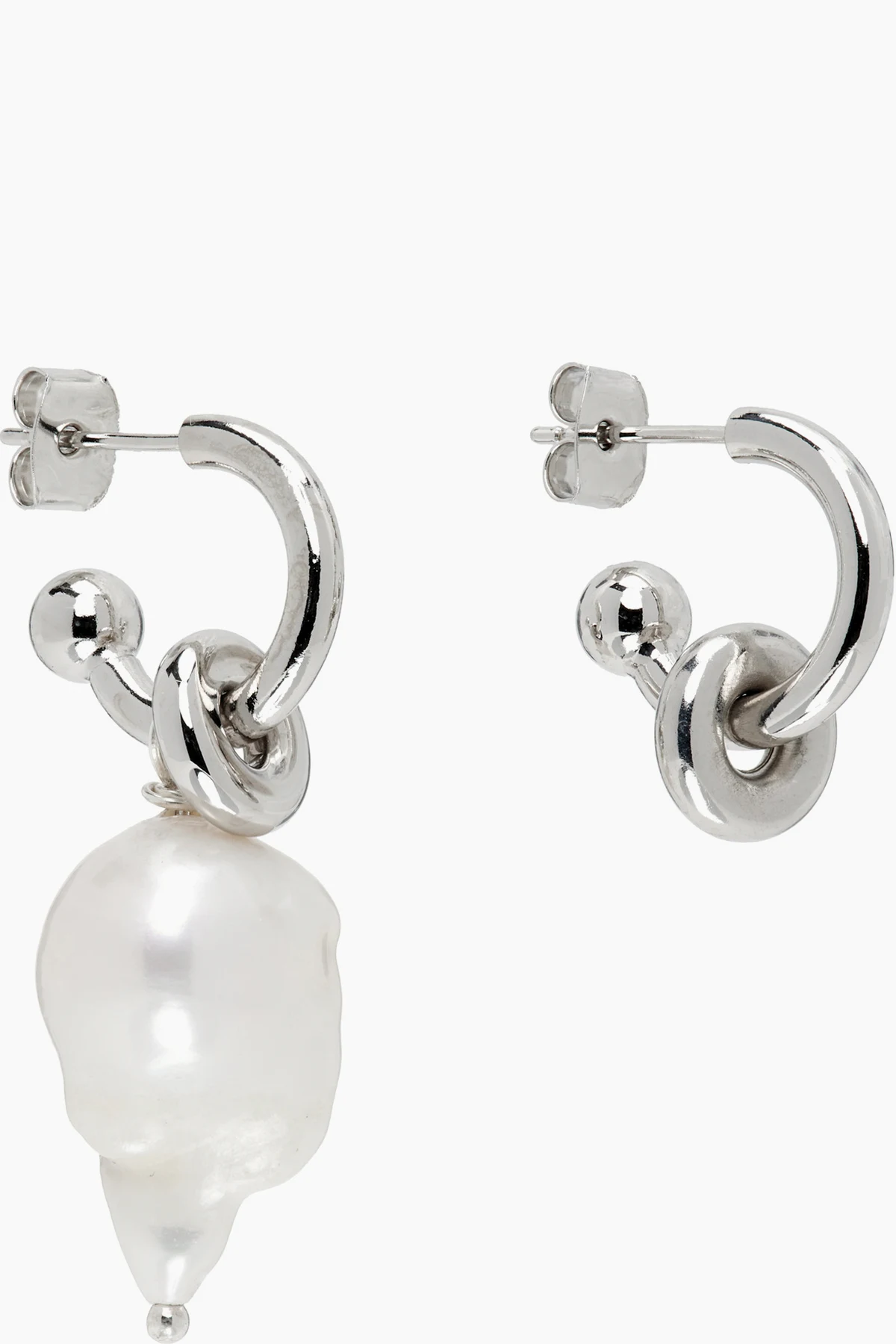 Pair of mismatched open hoop earrings in palladium-plated brass.